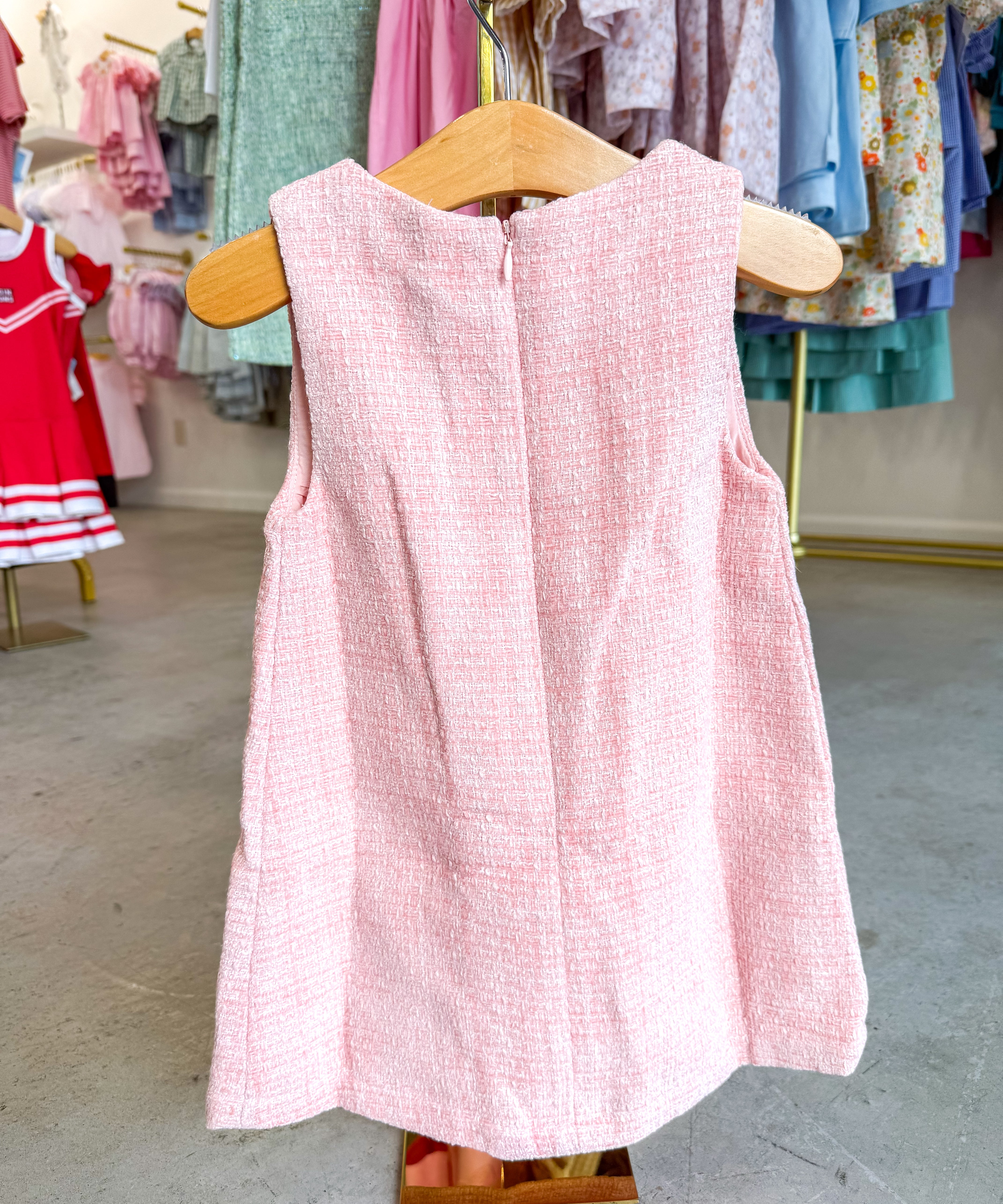 AMELIA - Pink Corduroy A- Line Dress S/S