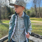 The Kasey Shacket - our top selling style and cut for boys and girls of all ages. Versatile and timeless, this shirt is perfect for dressing up or down! Crafted with care from our premium poplin cotton fabric, the Kasey Shacket seamlessly combines comfort and a polished look. In our green plaid flannel print. Elevate their wardrobe with this essential piece.