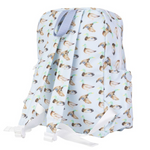 The Backpack is offered in several wipeable classic patterns, and equipped with an outer zipped pocket and two drink holder sleeves.