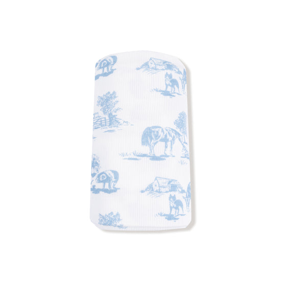 Farm Toile Blue Swaddle Blanket