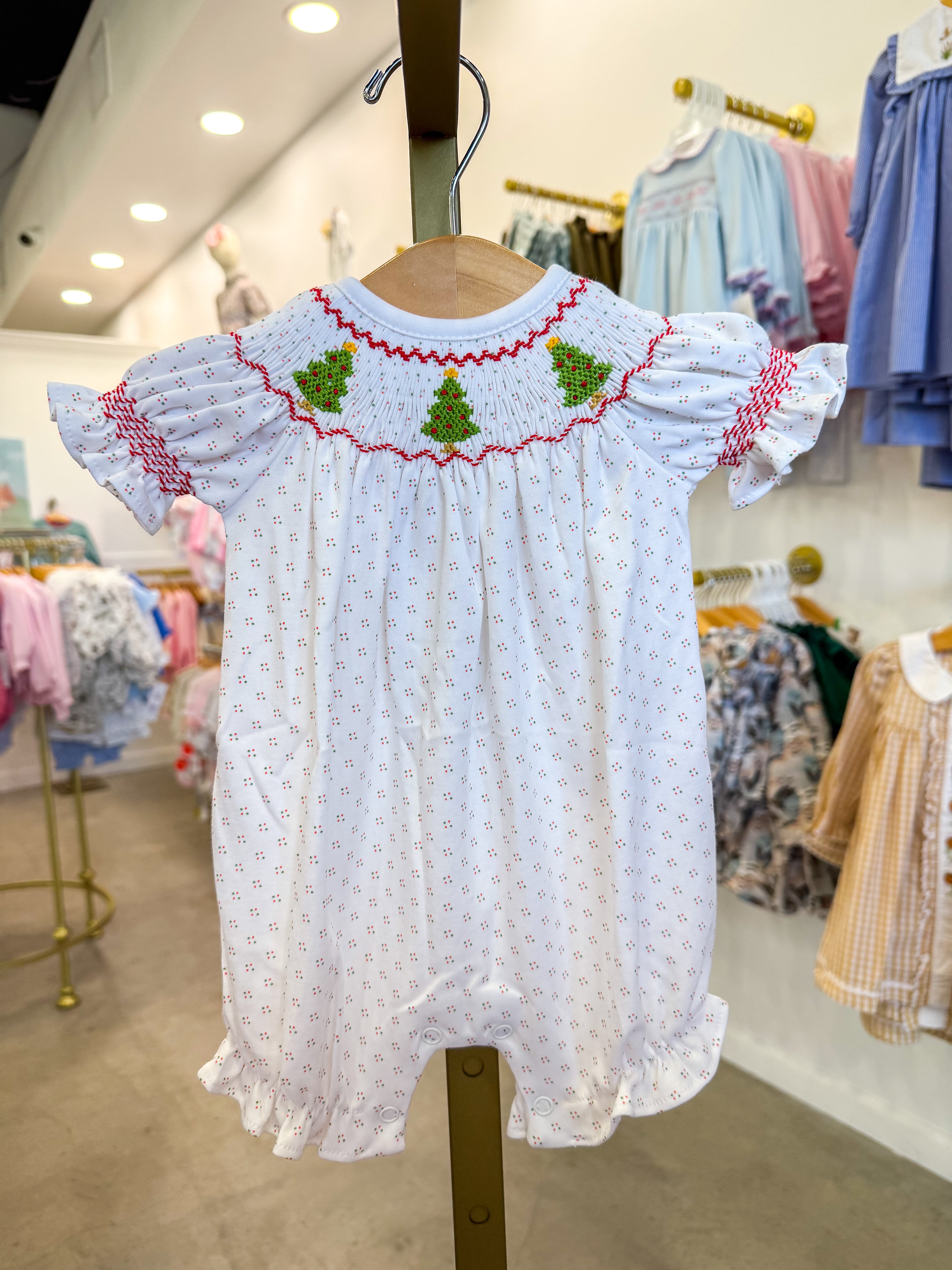 Christmas Trees Hand Smocked Bishop Girls Bubble