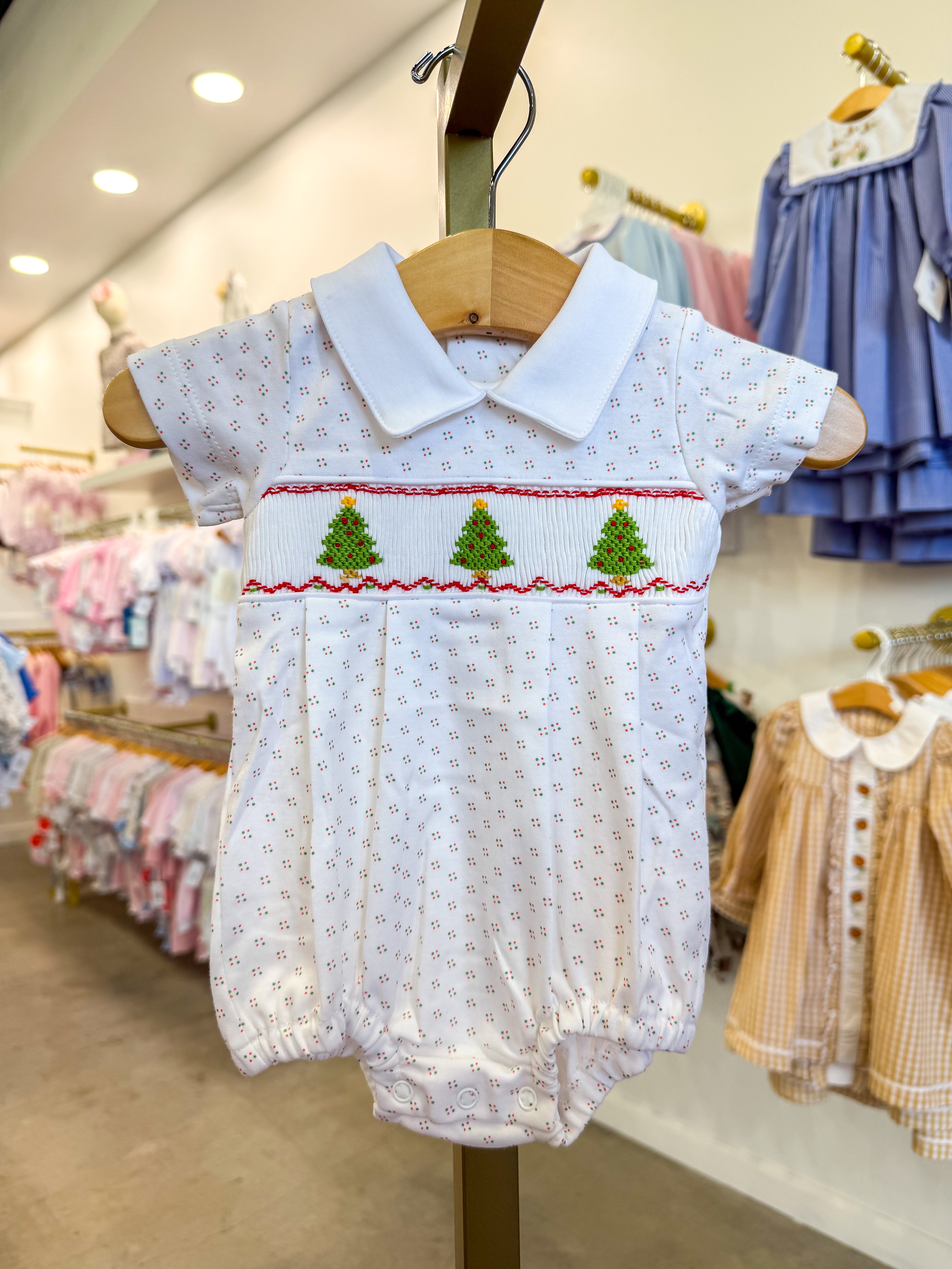 Christmas Trees Hand Smocked Pima Boys Bubble