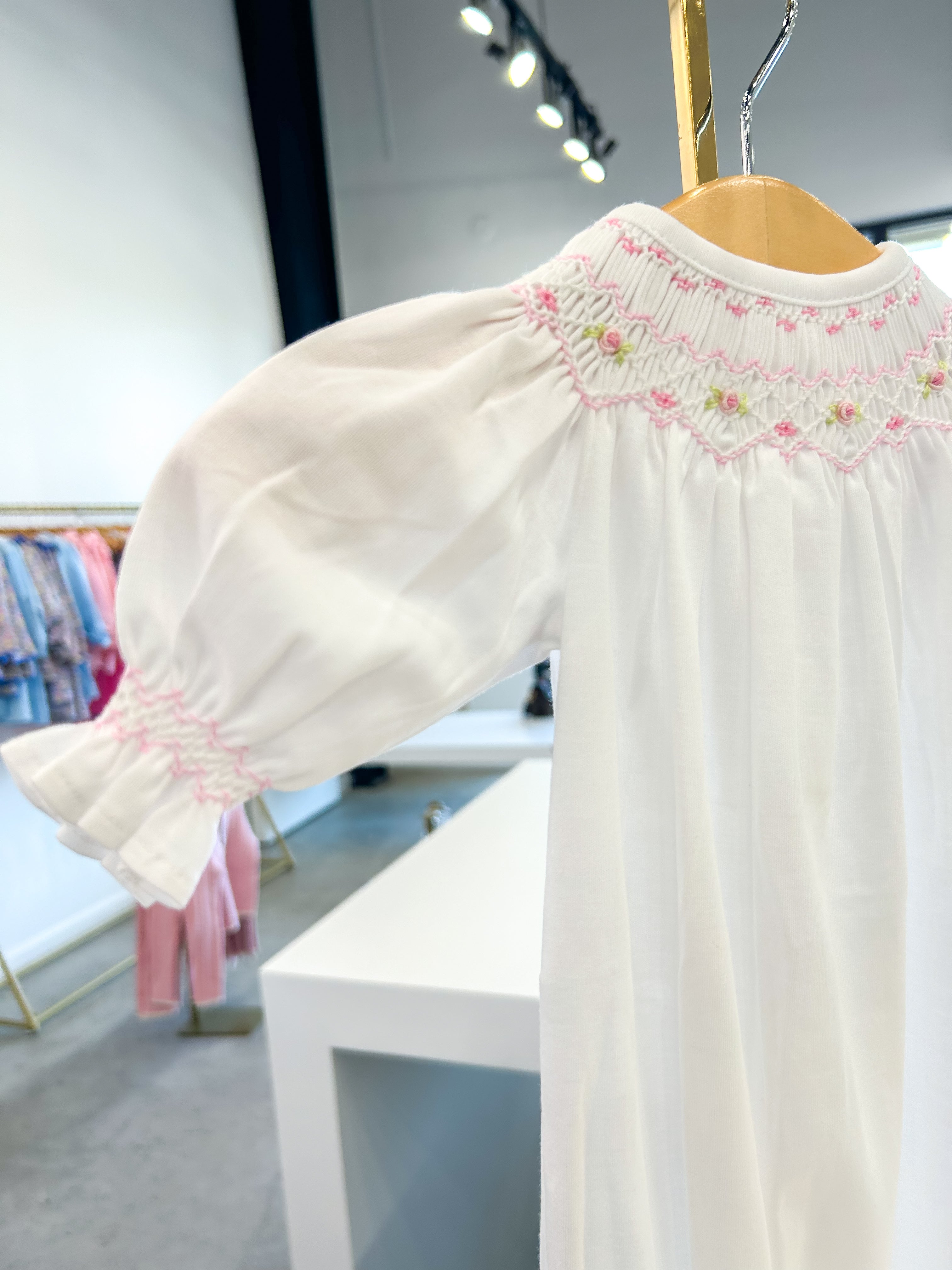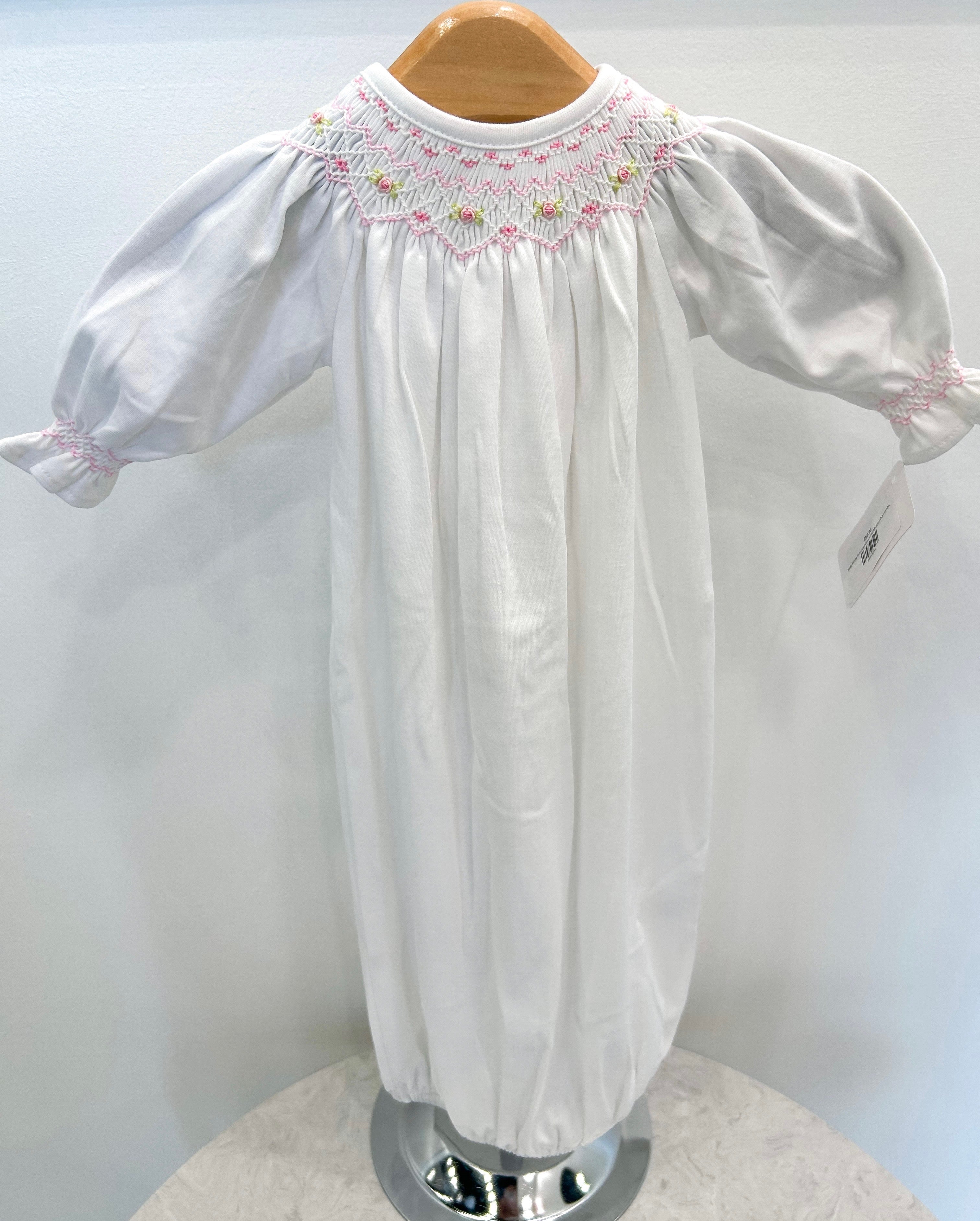 Sally White Smocked Gown