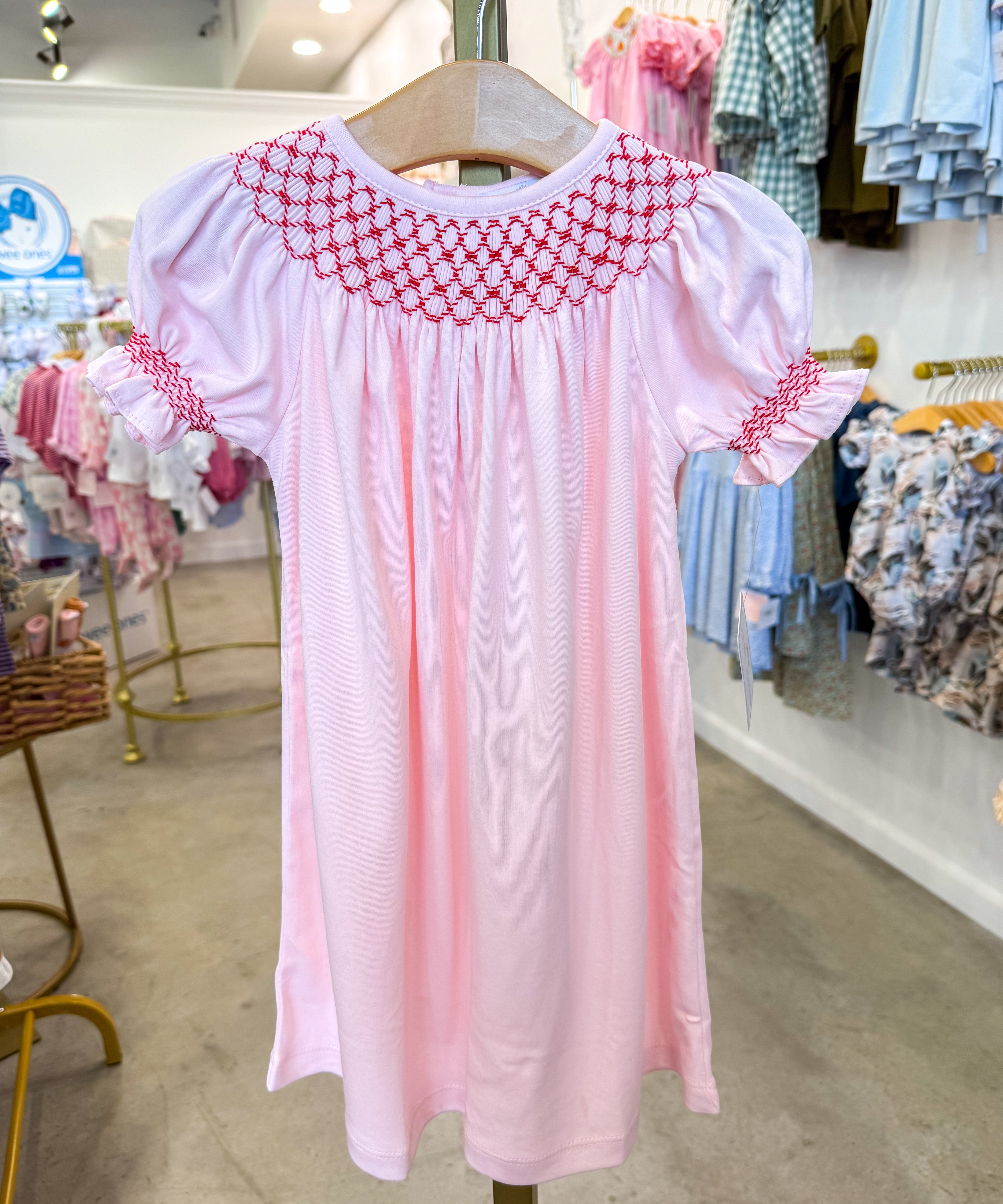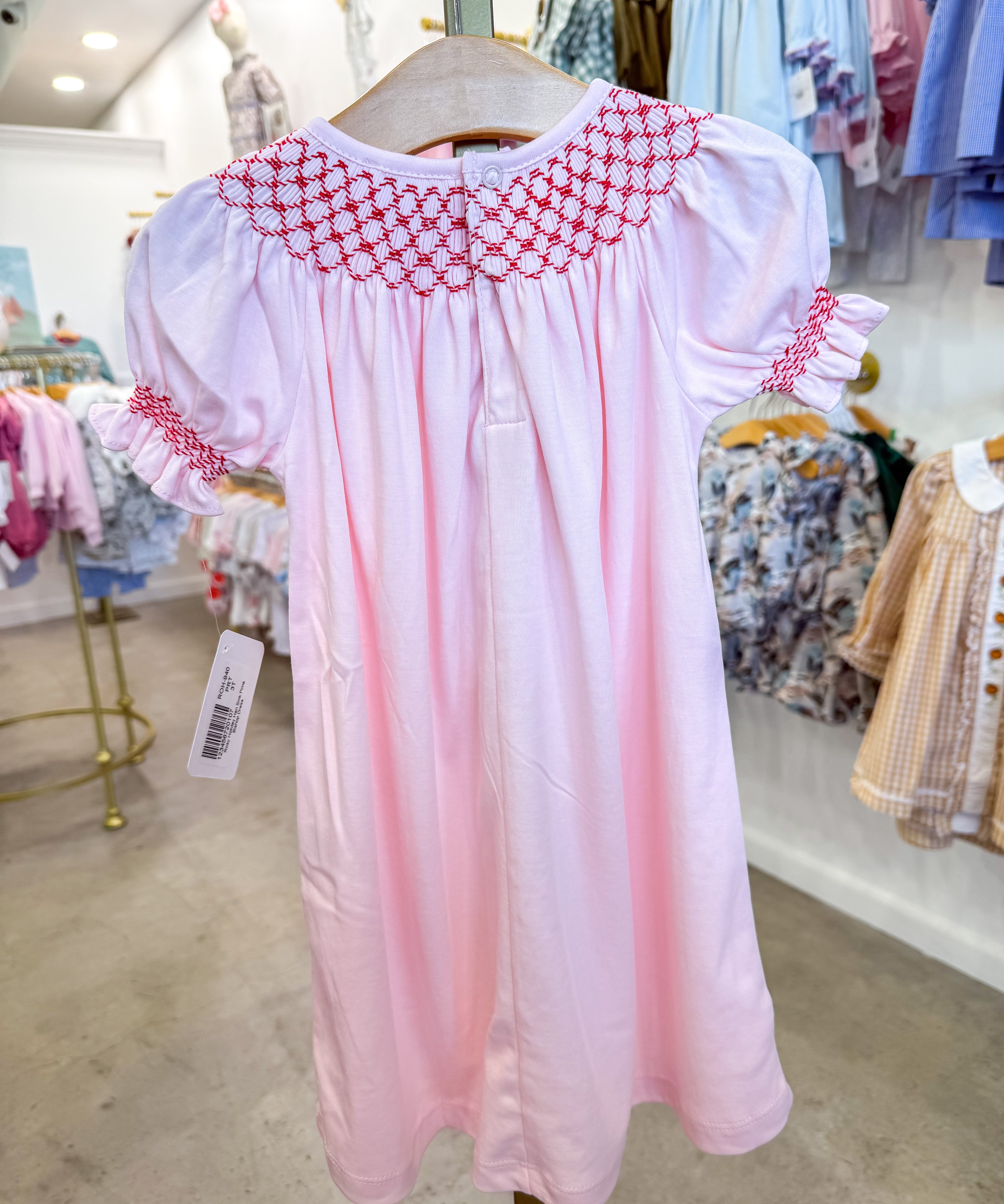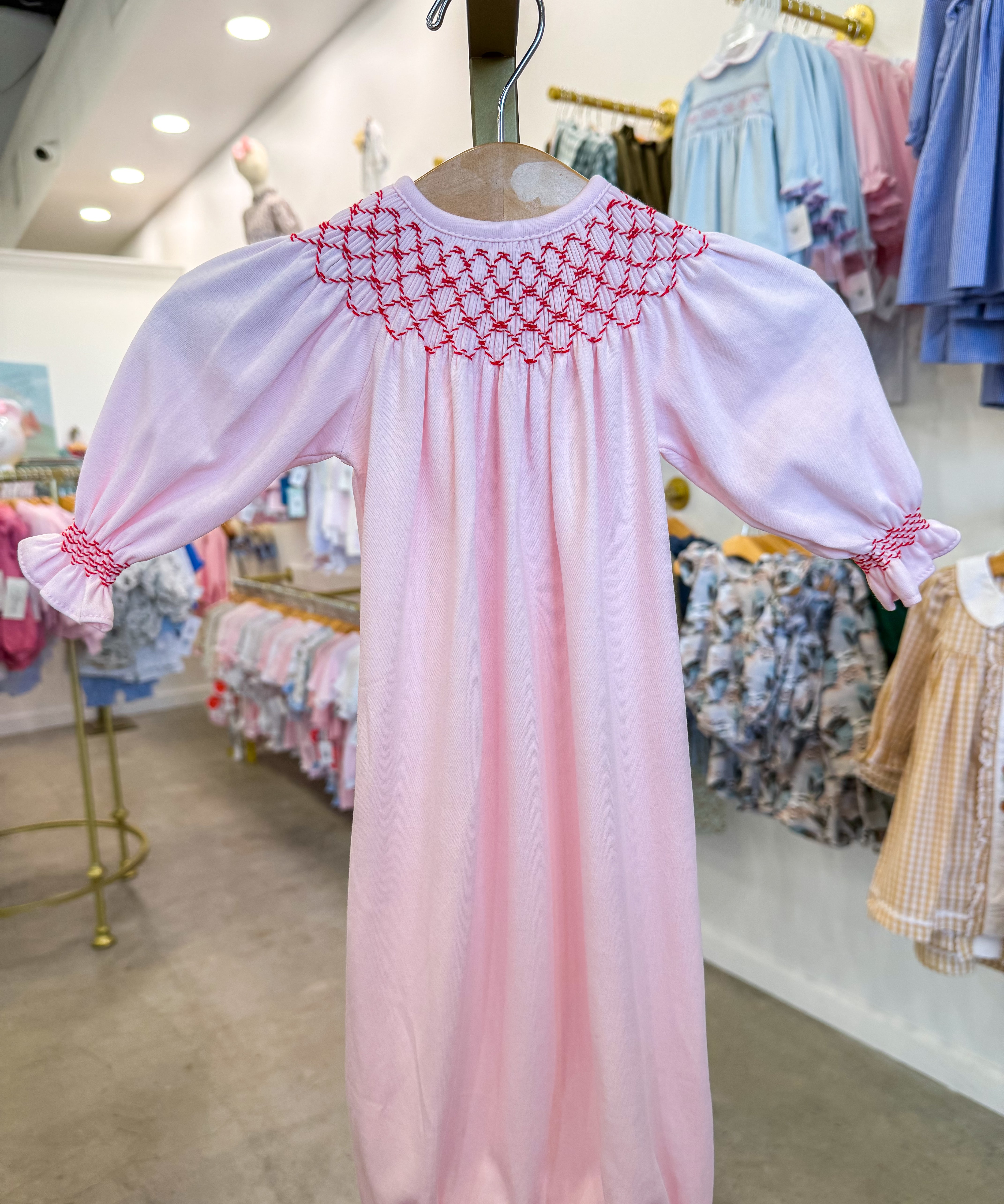 Rosy Holiday Hand Smocked Bishop Girls Gown