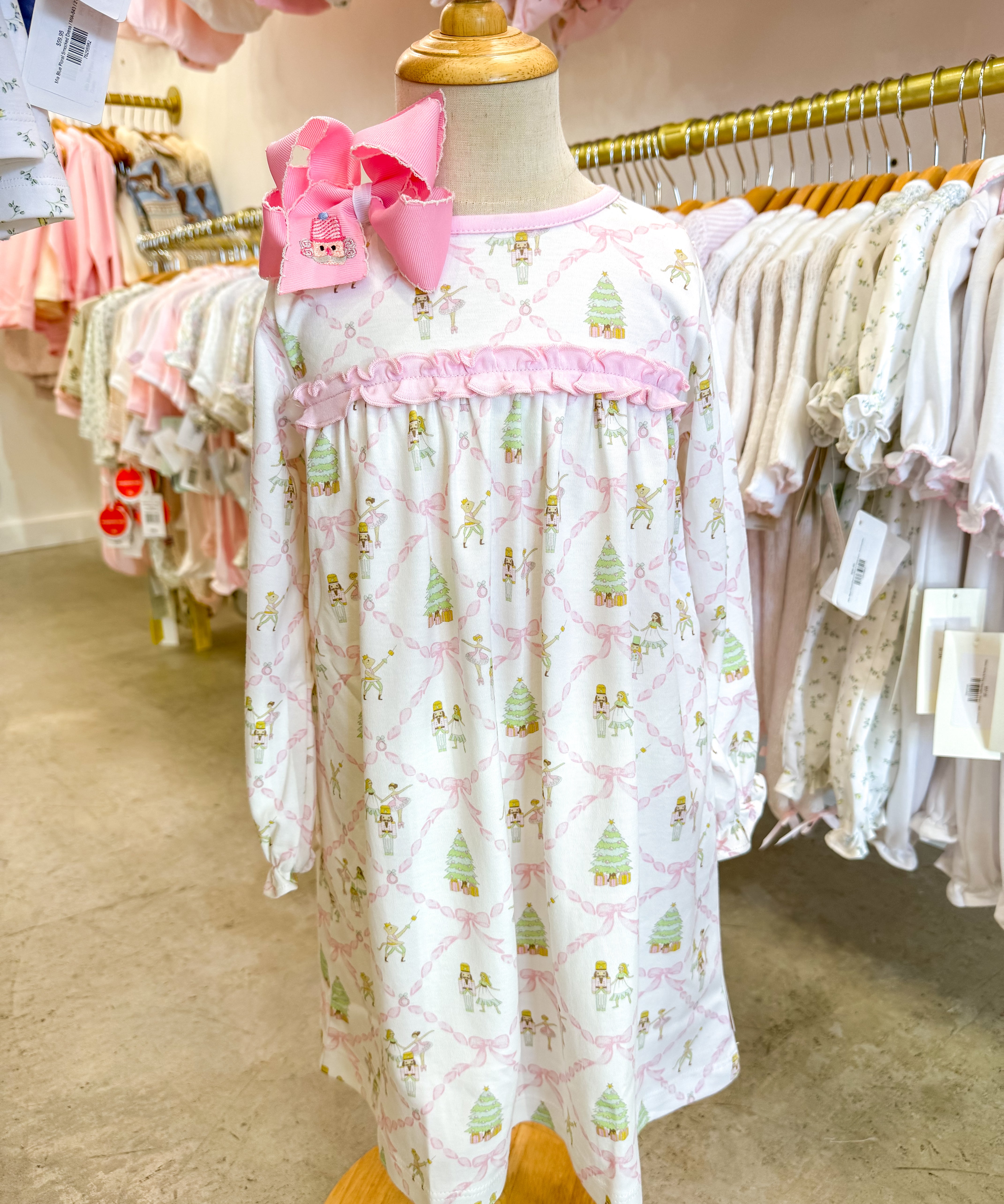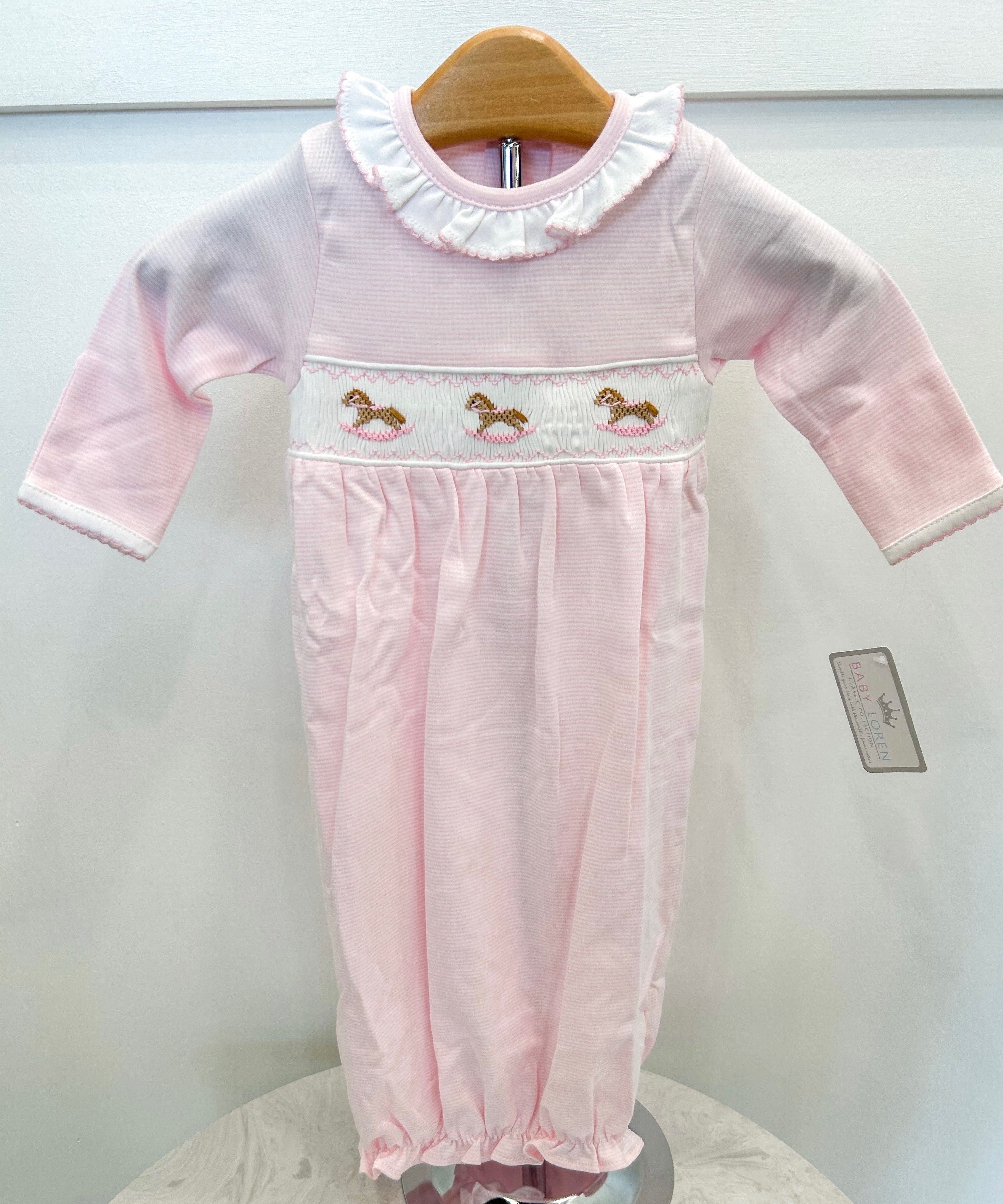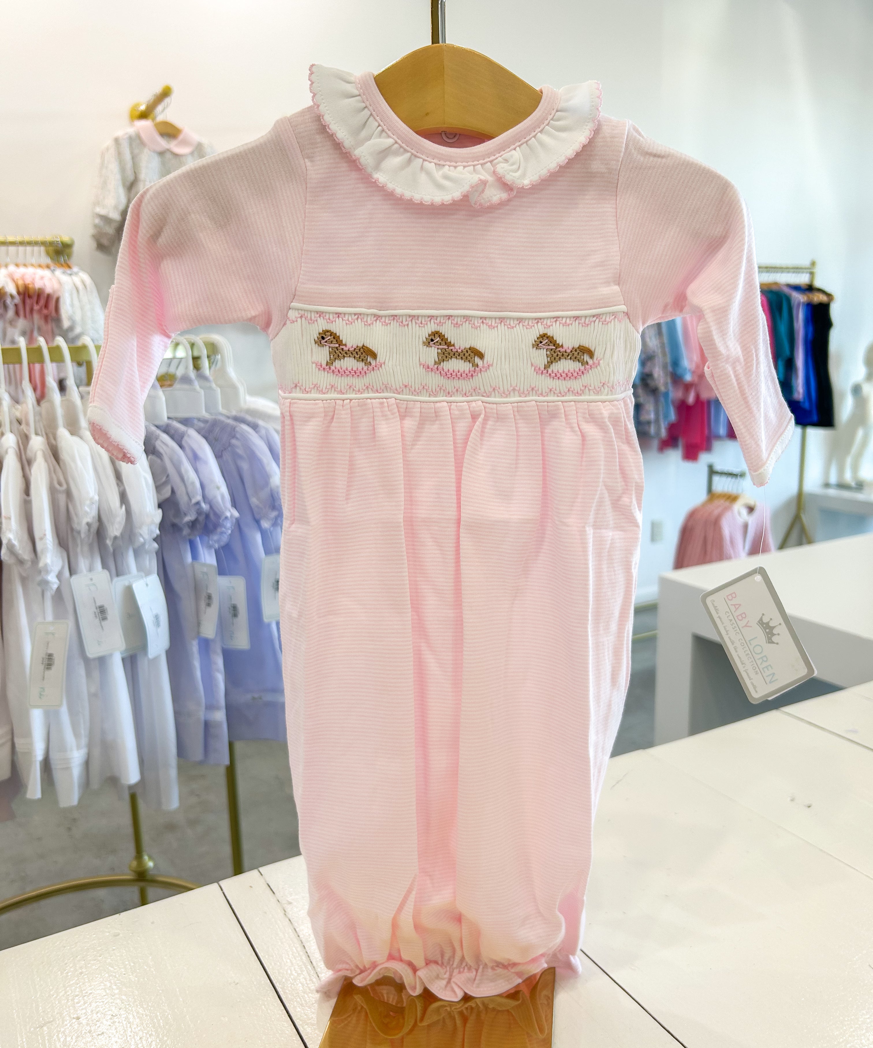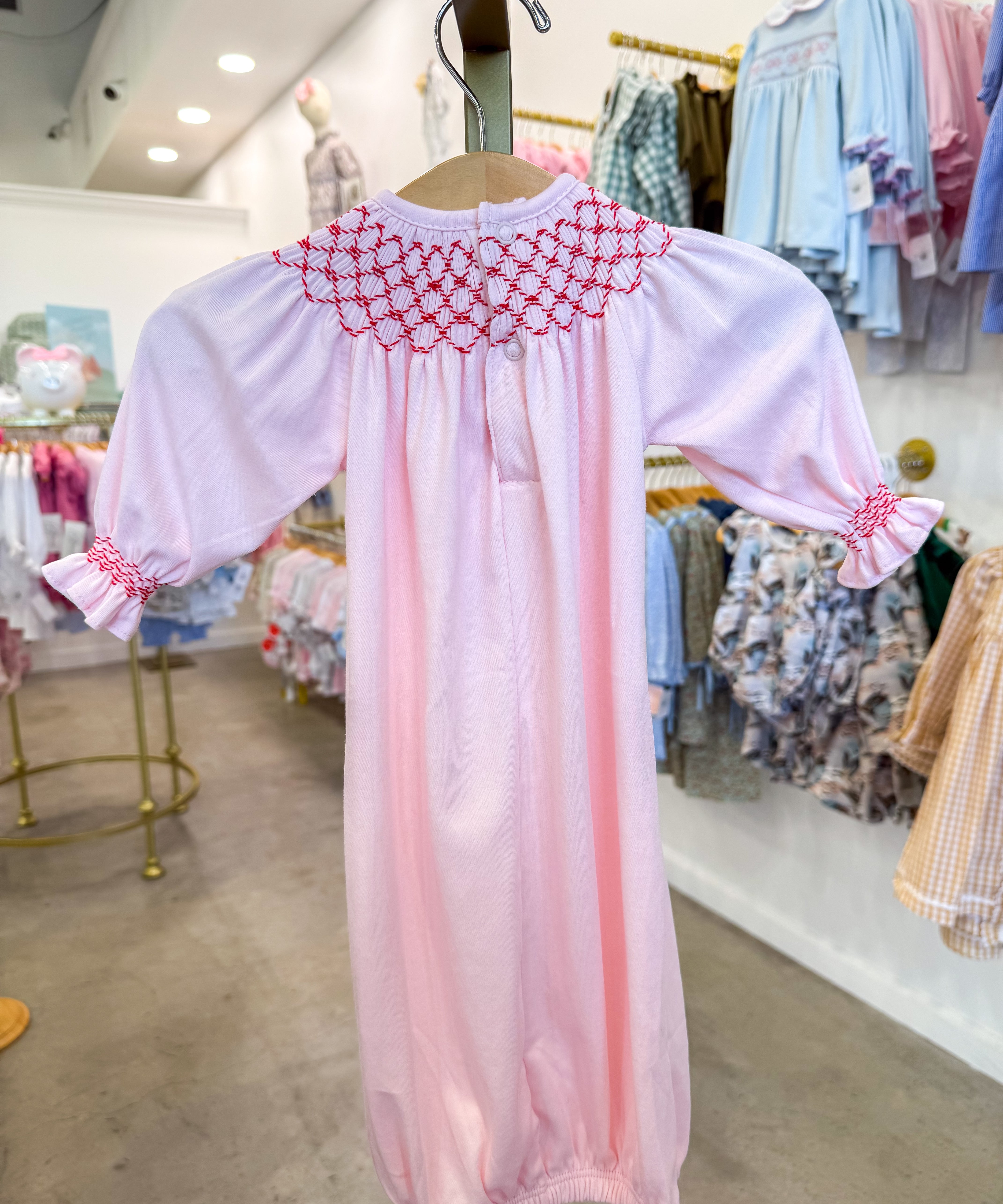 Rosy Holiday Hand Smocked Bishop Girls Gown