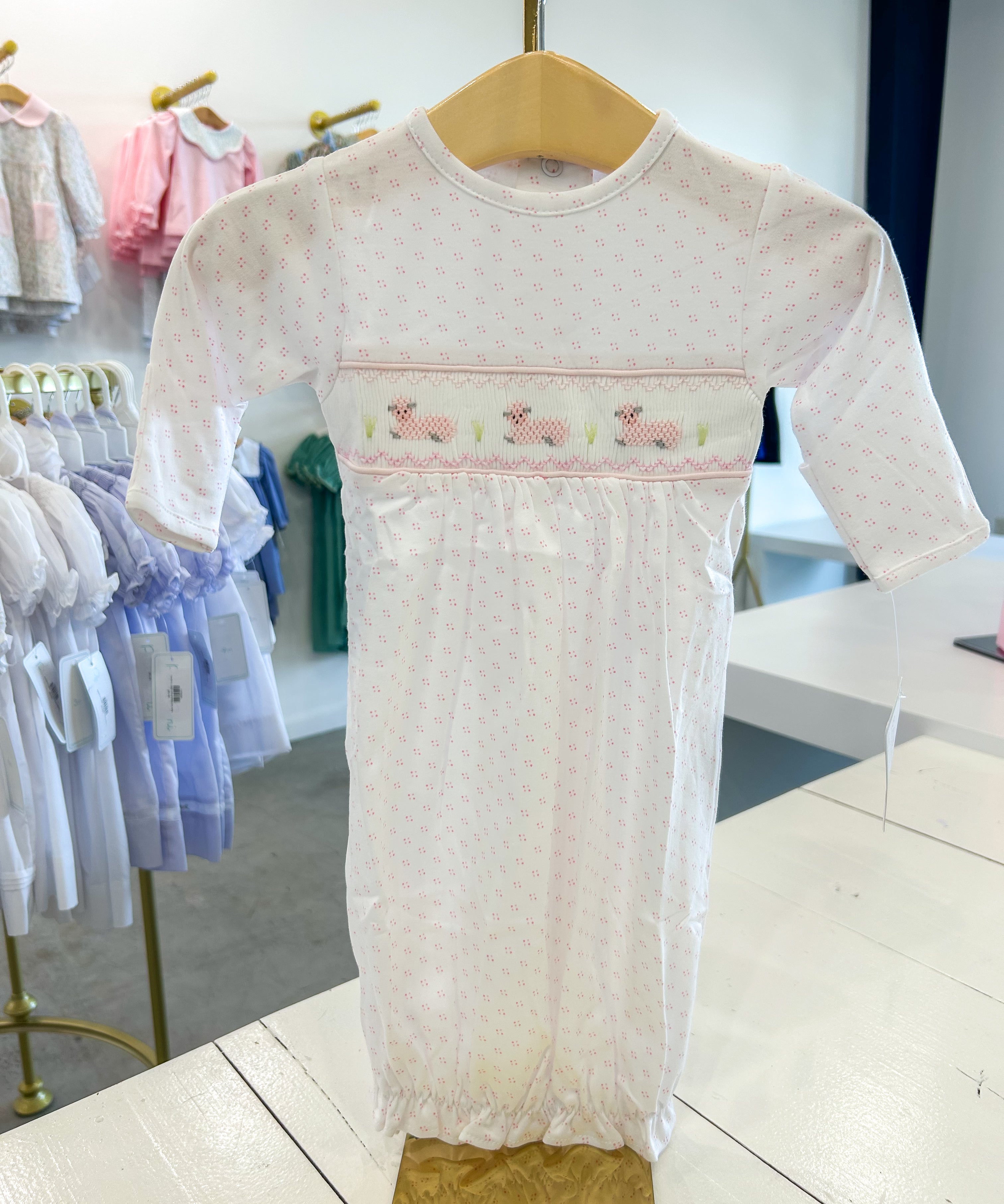 Pink Lamb Smocked Gown