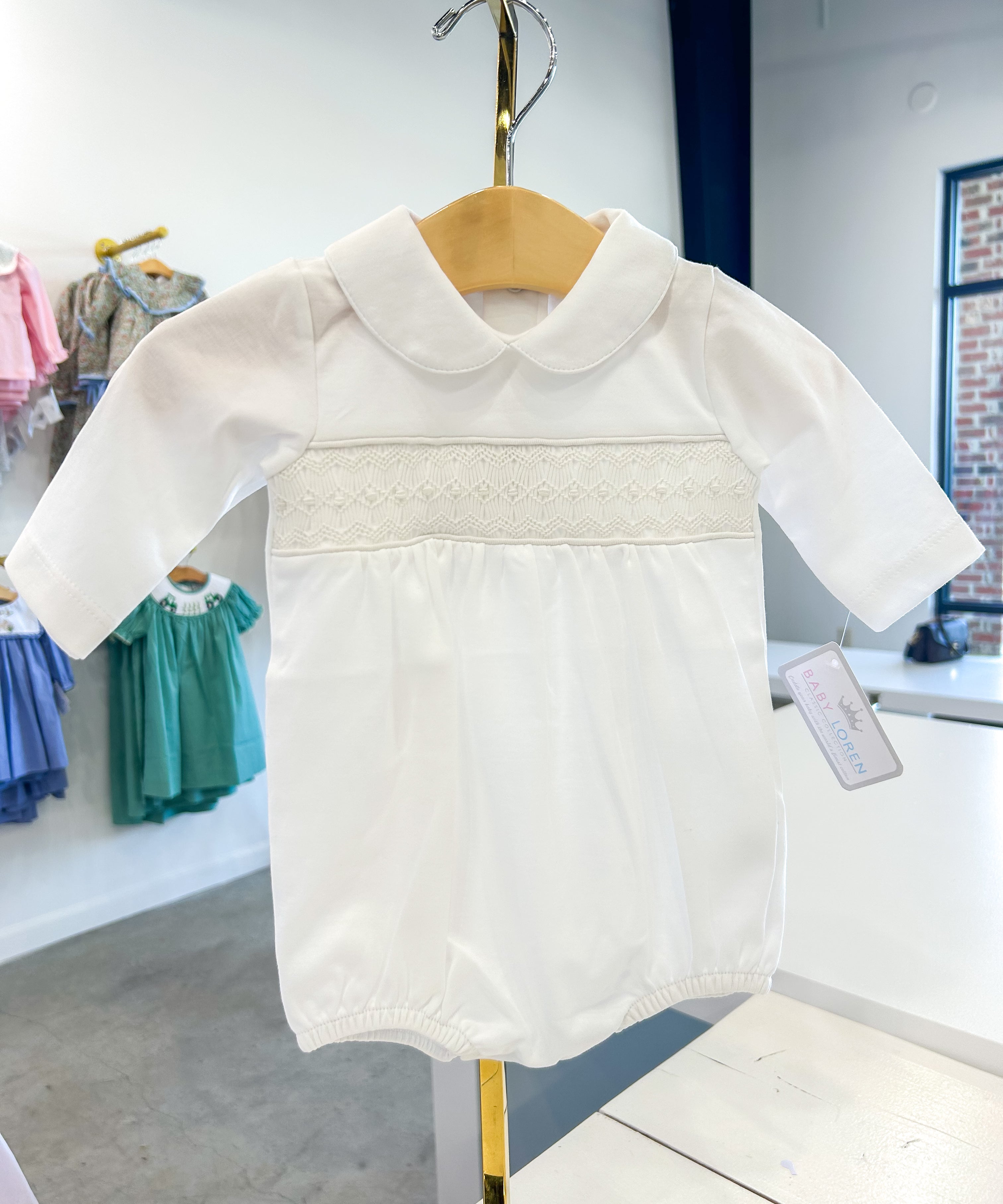 Emery White Smocked Bubble