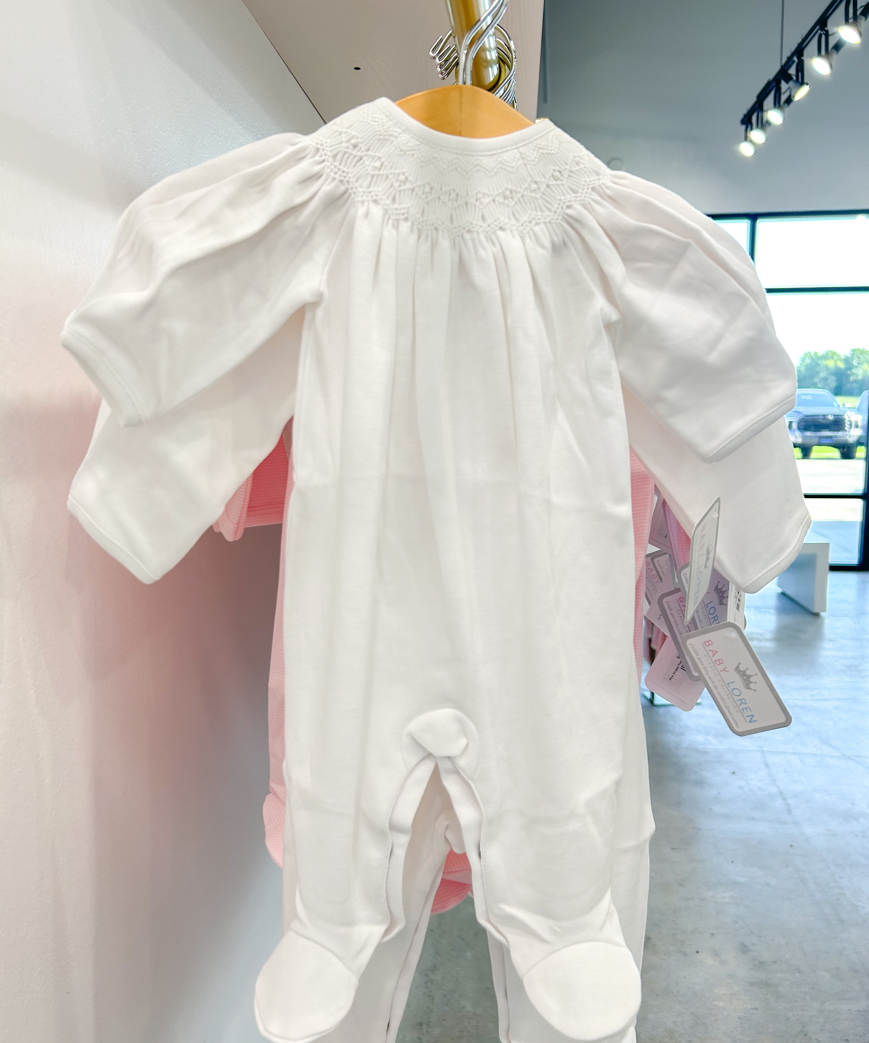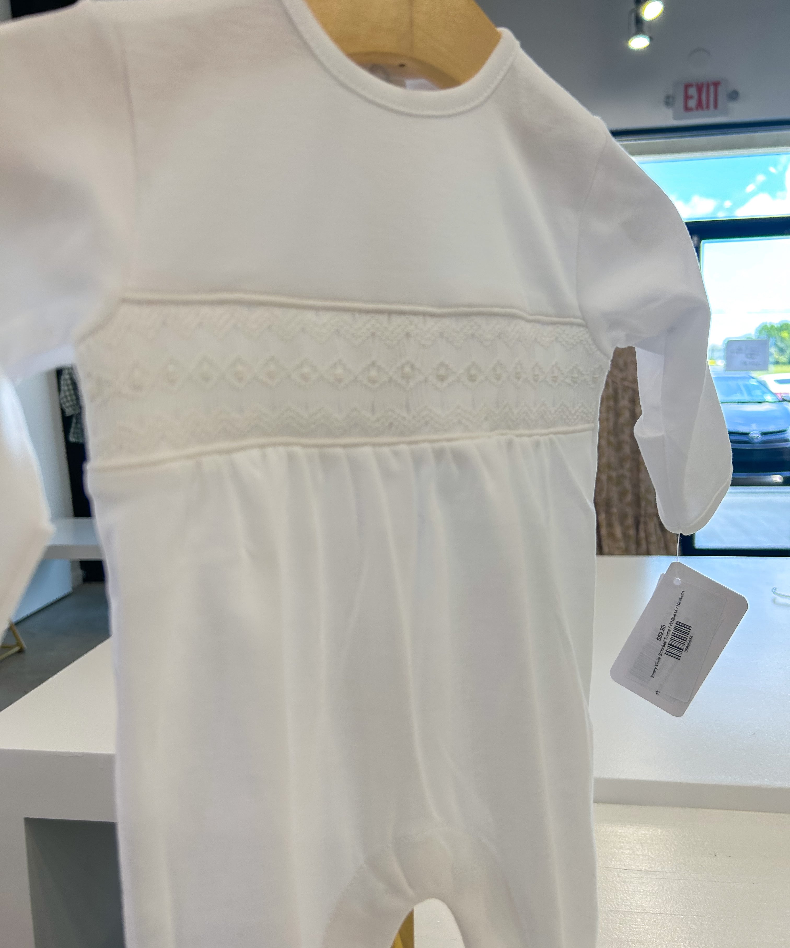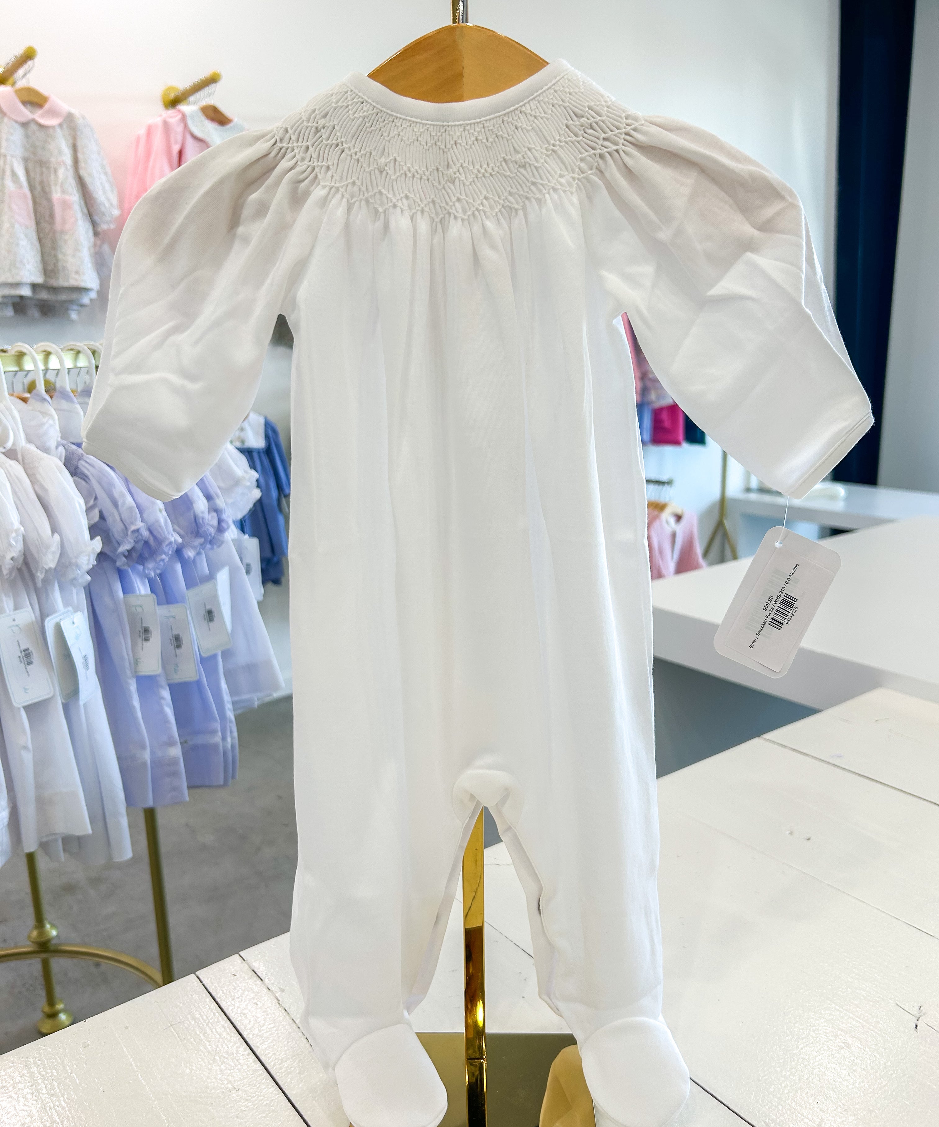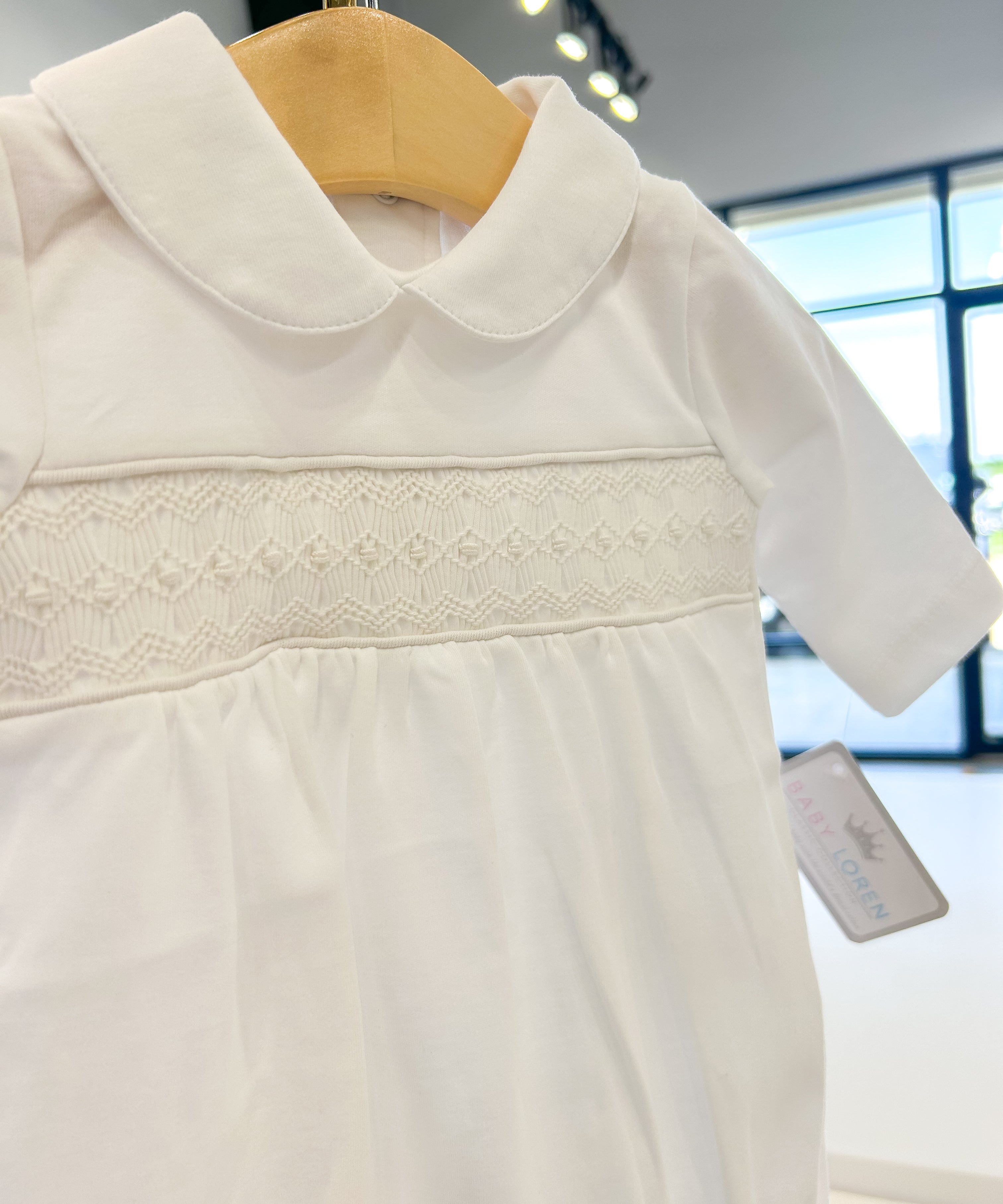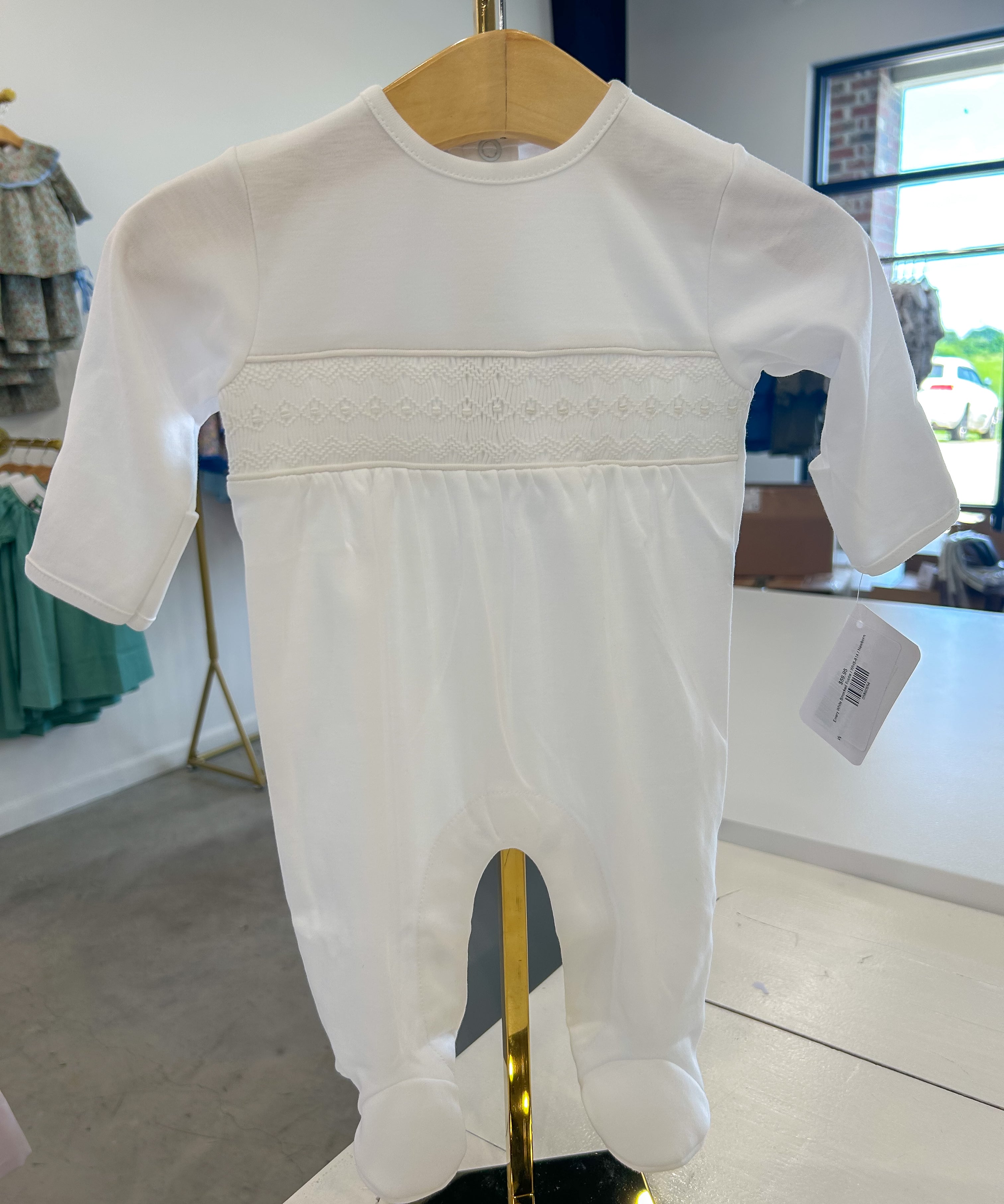 Emery White Smocked Footie