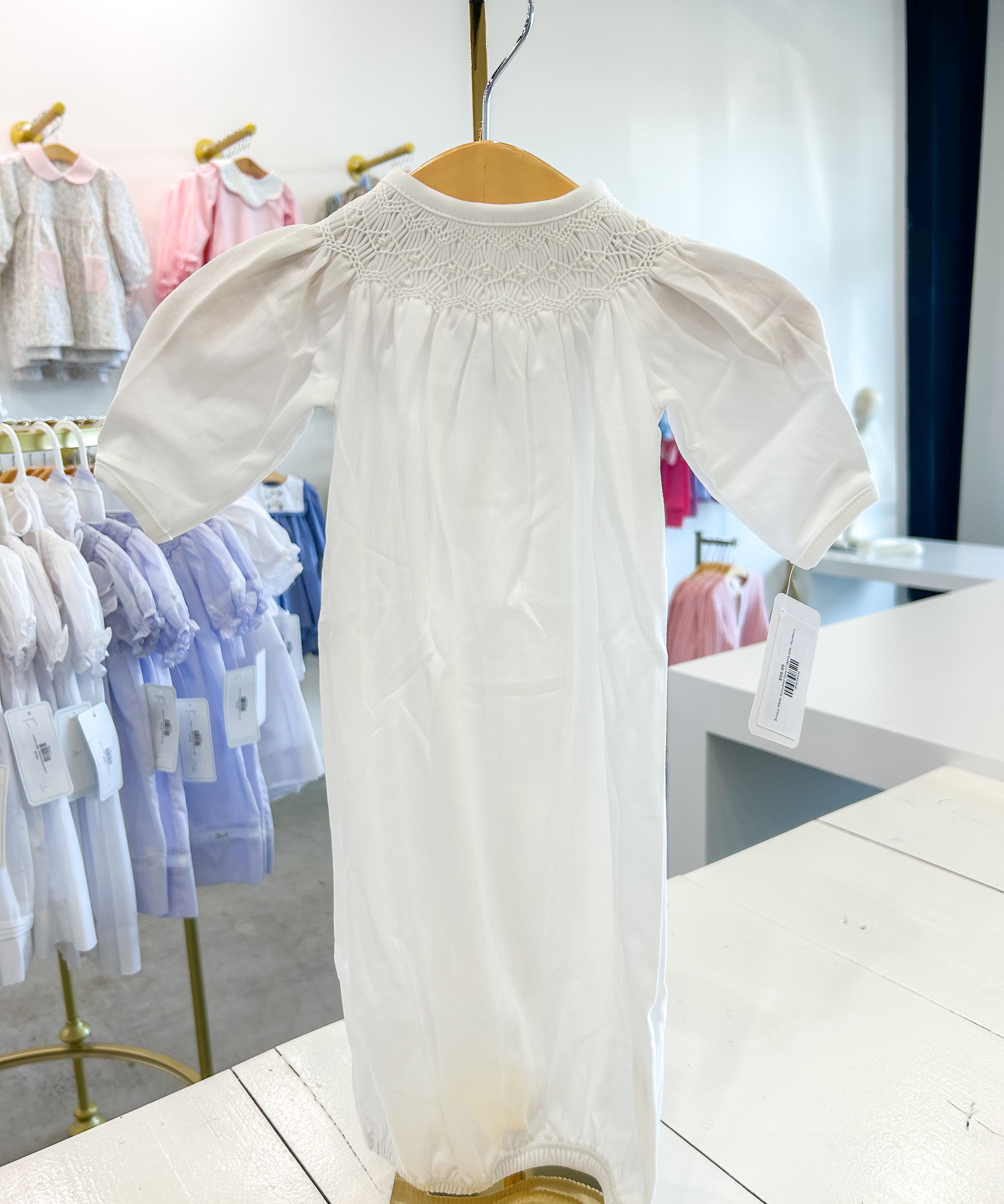 Sally White Smocked Gown