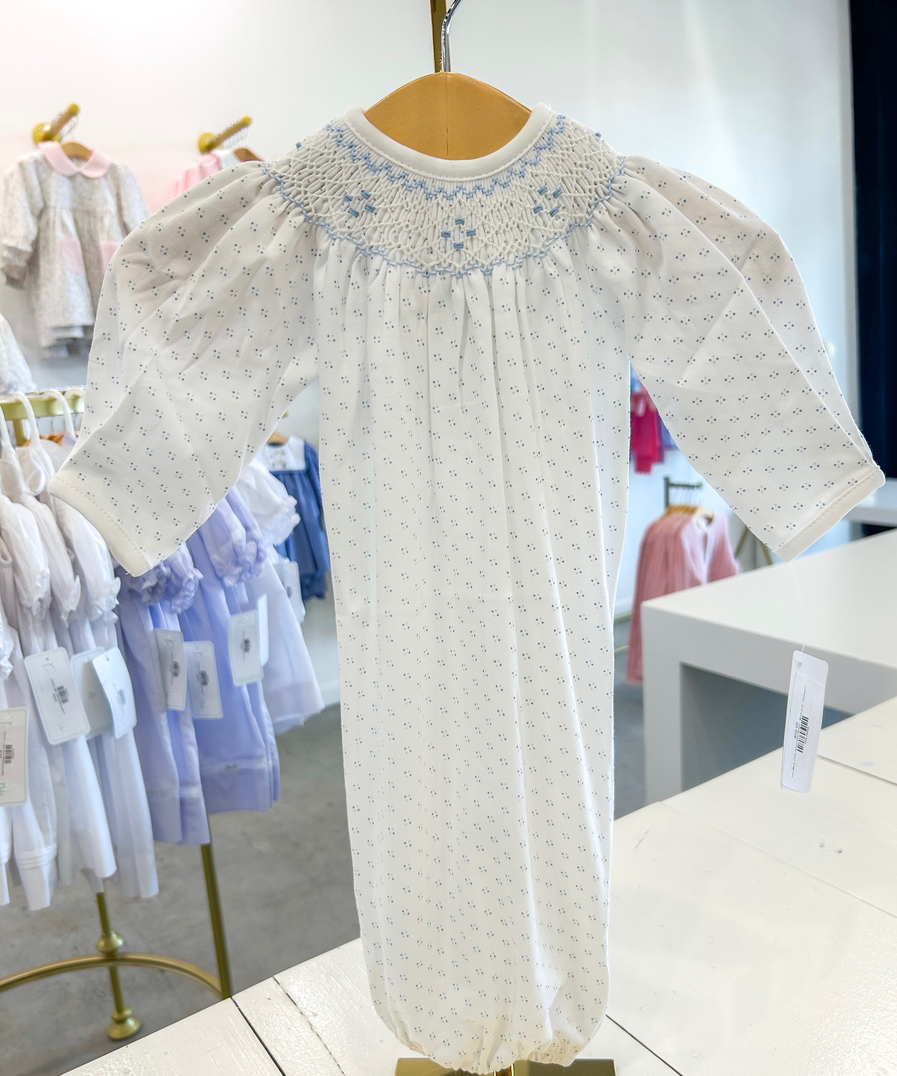 Tim Blue Dots Smocked Gown