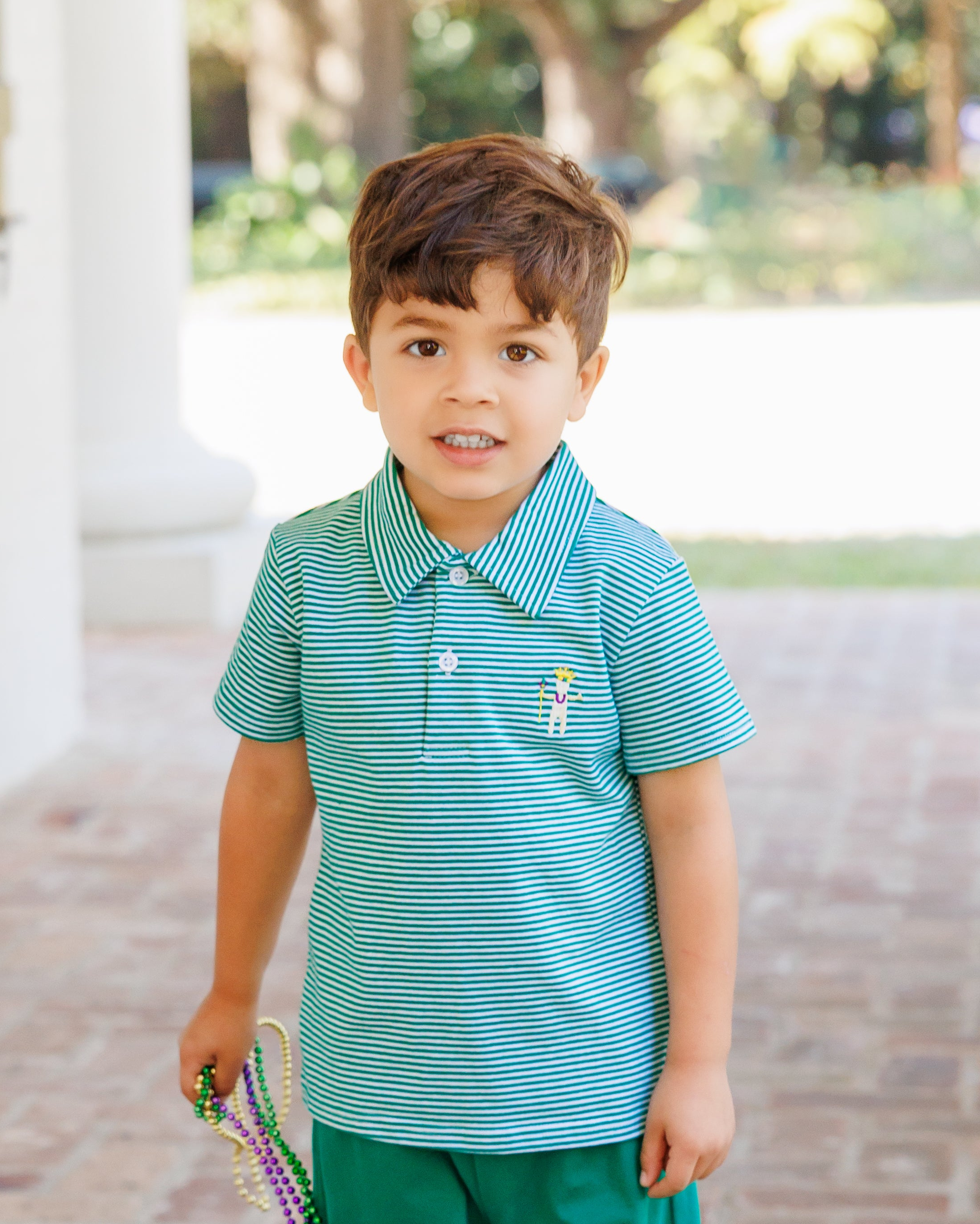 Dress your little one in festive flair with this King Cake Baby Polo—the ultimate outfit for celebrating Mardi Gras season!