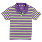 Get into the spirit with the short sleeve Mardi Gras Polo. This lightweight polo combines a festive purple, green, and yellow striped pattern with the comfort of a polyester-spandex fabric blend. Ideal for casual outings or celebrations in the French Quarter, liven up any outfit with the Mardi Gras Polo.