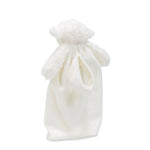 11 inch version of our Buddy Blanket Baby Safe Embroidered details Velcro loop for attaching to stroller and carseat easy to snuggle, with satin lining 100% polyester machine wash, dry low heat Kiddo lamb lovey in a new travel-sized bye bye edition is the best thing to hit the farm in y-ears. Baby will just love Kiddo's swirly soft white fur; your best bet is to buy these loveys by the bunch! This favorite security blanket is an adorable lamb with handcrafted, baby-safe embroidered face and a snuggly soft warm-white velour split blanket, lined and edged in matching silky satin. Travel loop on the back for securing to a stroller or and car seat is sure to keep this lovey nearby.