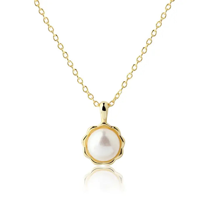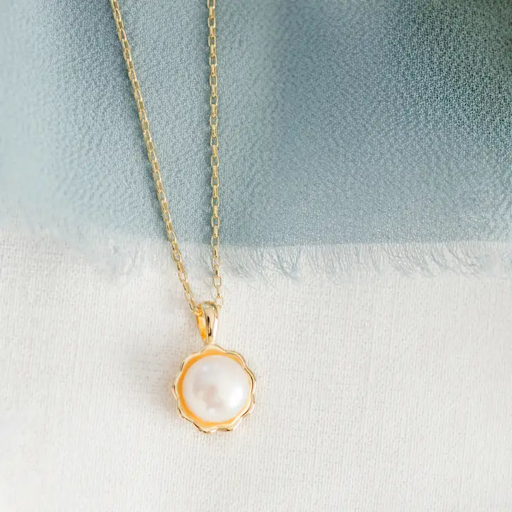 Children's 14K gold-plated soft freshwater pearl necklace with a dainty embellished edge. These necklaces make an adorable flower girl gift, pearl pendant for little girls, birthday gift or Easter present. This also makes a great keepsake for granddaughters and comes on high-quality Italian rolo chain with durable clasp. 🌸High-quality chain created with .925 sterling silver and then plated with 14K gold made with all precious metals (no base metals that can cause skin irritation such as nickel). 🌸 Available in 2 lengths: 14 inch chain for kids or 16-18 inch chain for older girls, teens, and women. (See sizing chart in the photos) 🌸Necklace is presented in a sweet gift box ready for gifting and merchandises on our fixture beautifully.