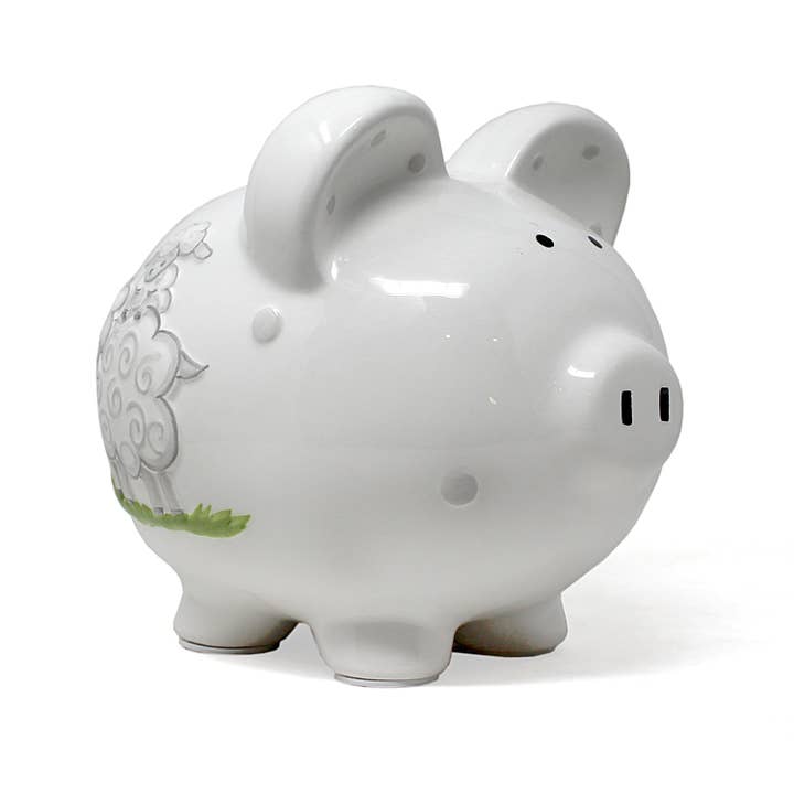 All of our banks are made from only the highest quality ceramic, known as dolomite, for increased durability. They feature a base that is deep glazed, insuring that this essential color doesn't wear off with repeated handling. To finish things off, we add a shiny finishing that keeps the colors of all of the underlying components locked in place, meaning that you never have to worry about compromising the quality of the bank with repeated use. ** Piggy Bank Dimensions 8x7x7 inches