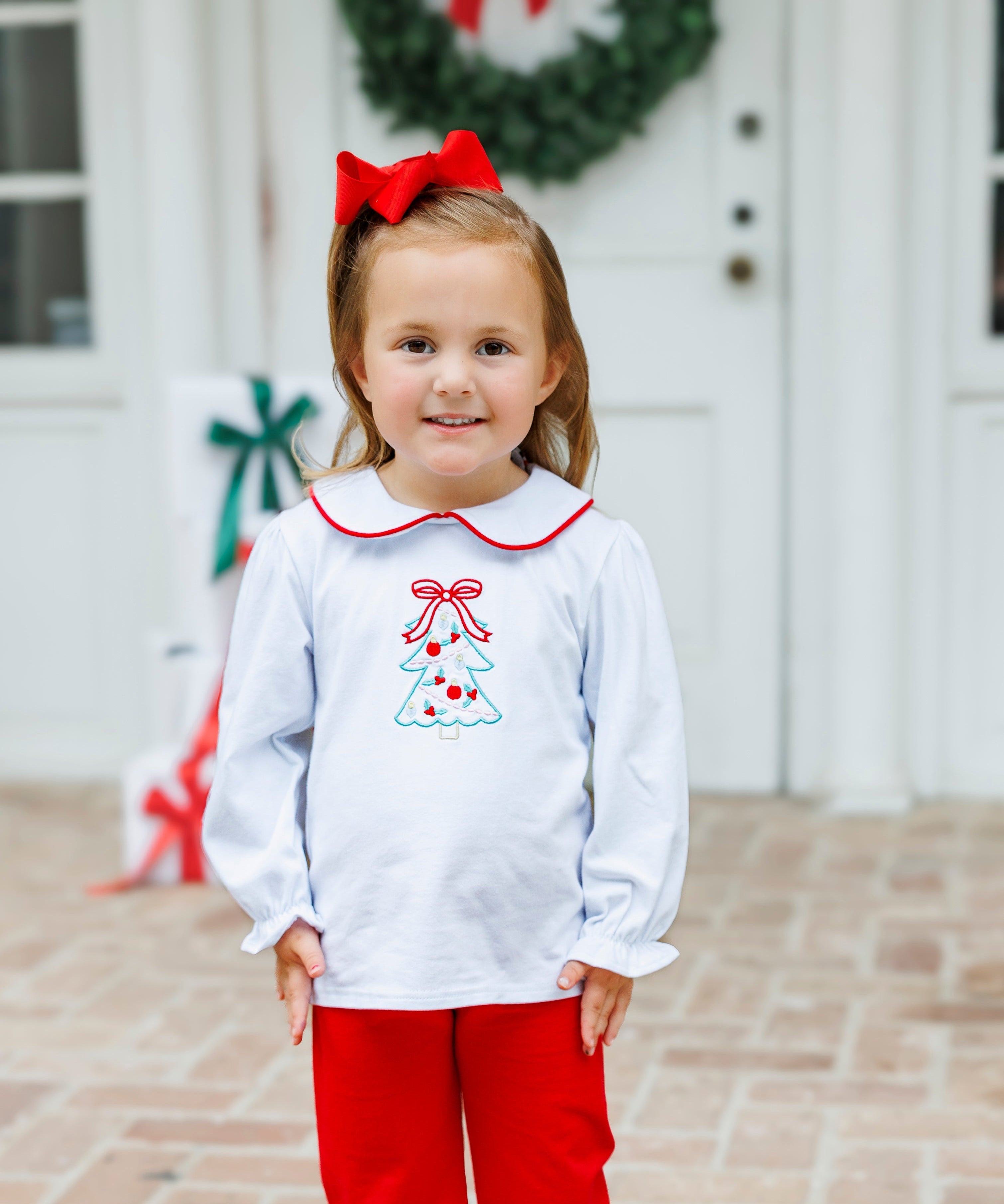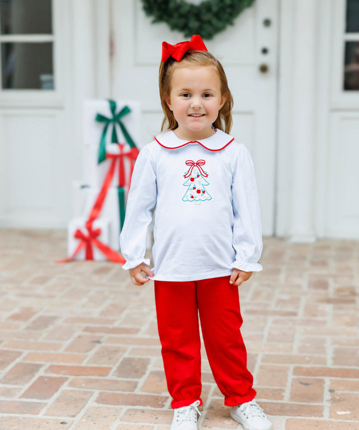 Red Gingham Christmas Tree Bishop Bloomer W/Bows