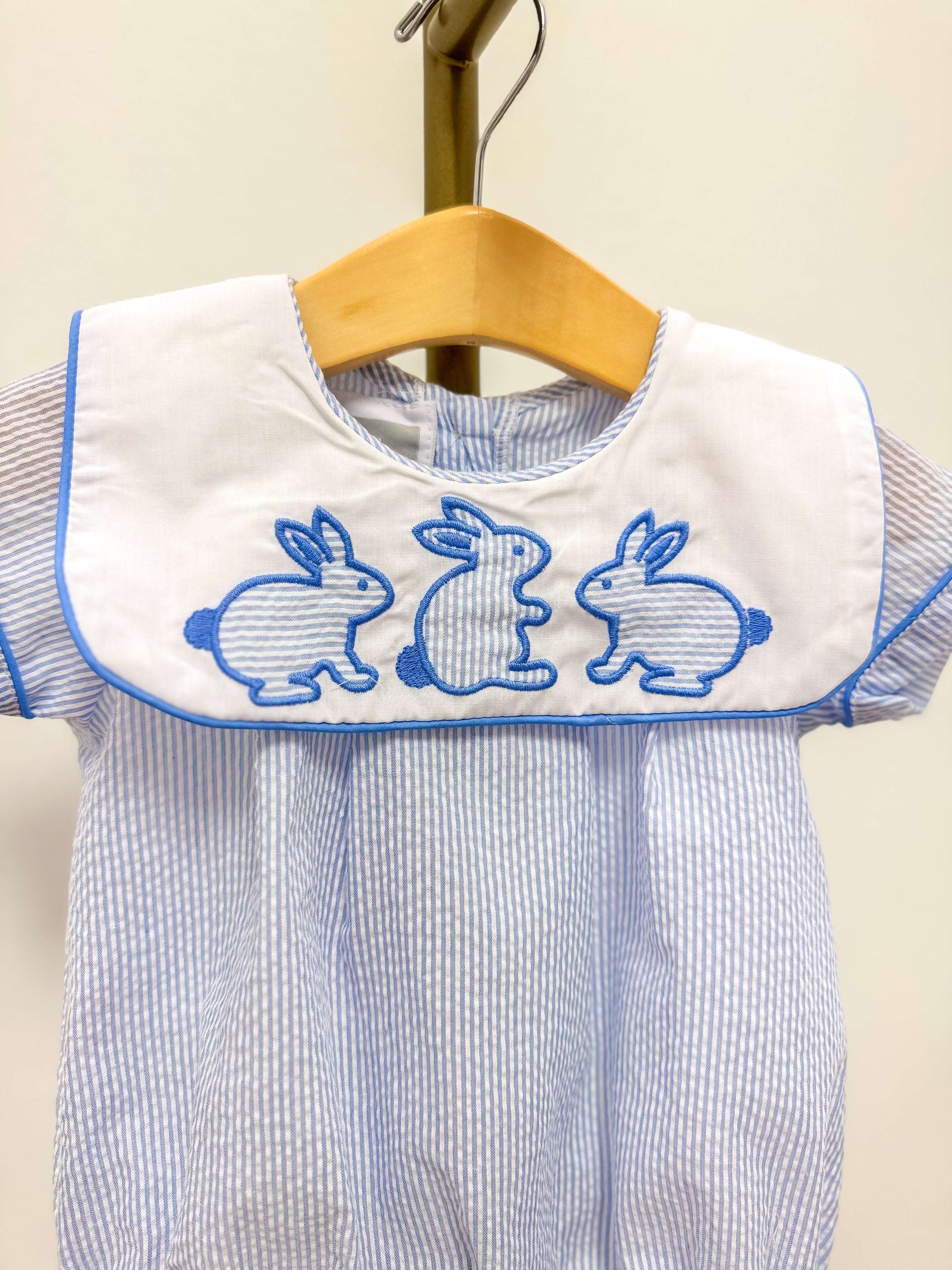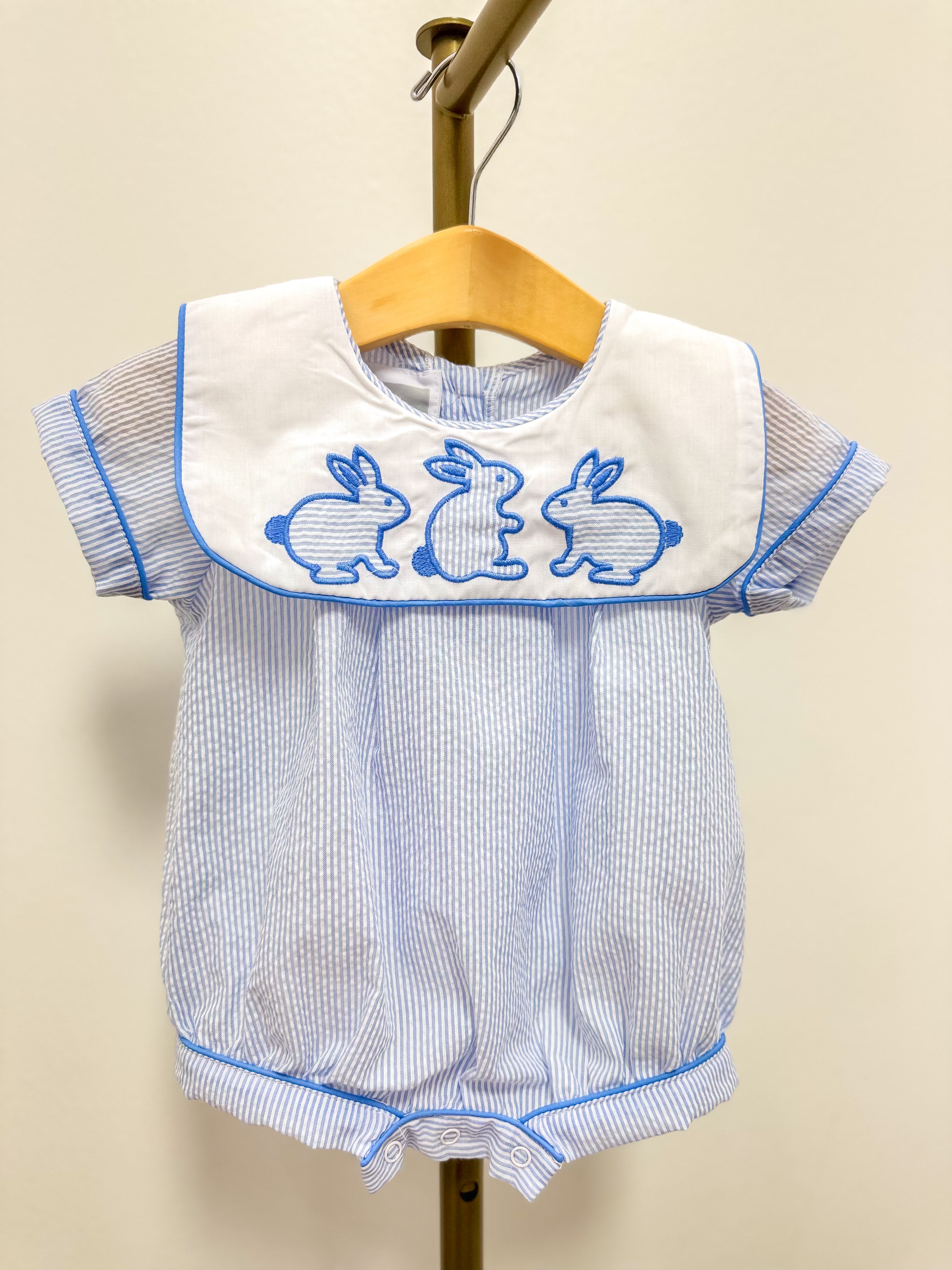 Blue Stripe Bunny Romper