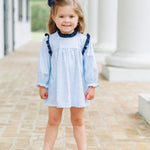 Dress your little one in delightful style with our Blue Blooms Hallie Diaper Set! This adorable ensemble features a charming floral print top with a playful navy ruffle collar that adds just the right touch of flair. Paired with a matching navy diaper cover, this set is perfect for fall outings, family photos, or just looking extra cute during everyday adventures!