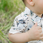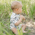 Made for sunshine and southern adventures, this baby boy jumper is crafted from lightweight, breathable, and packed with UPF 50+ sun protection. Featuring our 'mallard sky' all over mallard print, this short sleeve one piece keeps your little guy cool, covered and comfortable from backyard hangs to boat days.