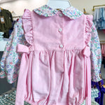 Pink corduroy girls' short bubble with pink liberty long sleeve blouse
