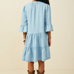 Girls Washed Button Detail Ruffle Sleeve Tencel Dress *Washed Denim Fabric *Button Detail *Ruffle Sleeve
