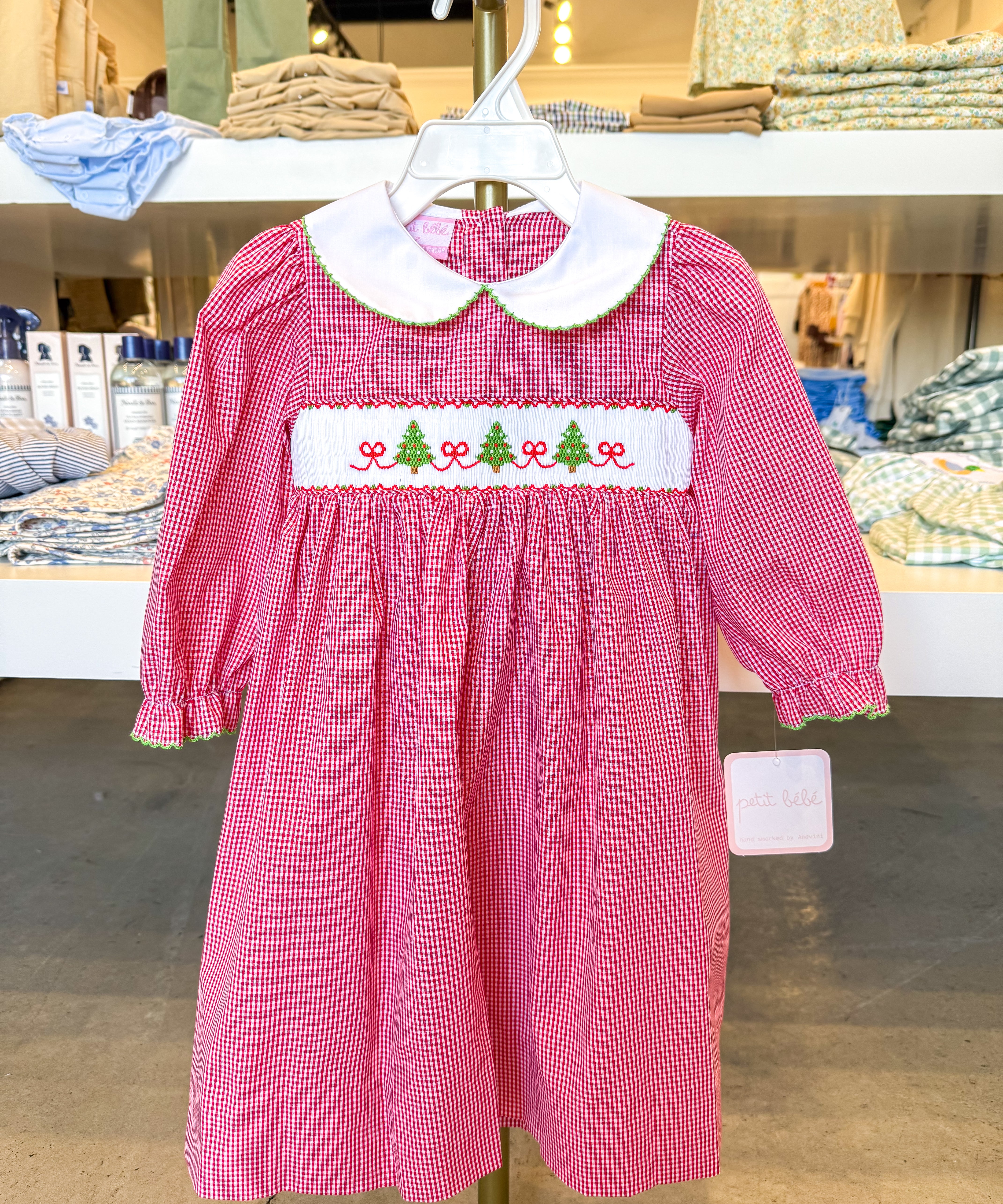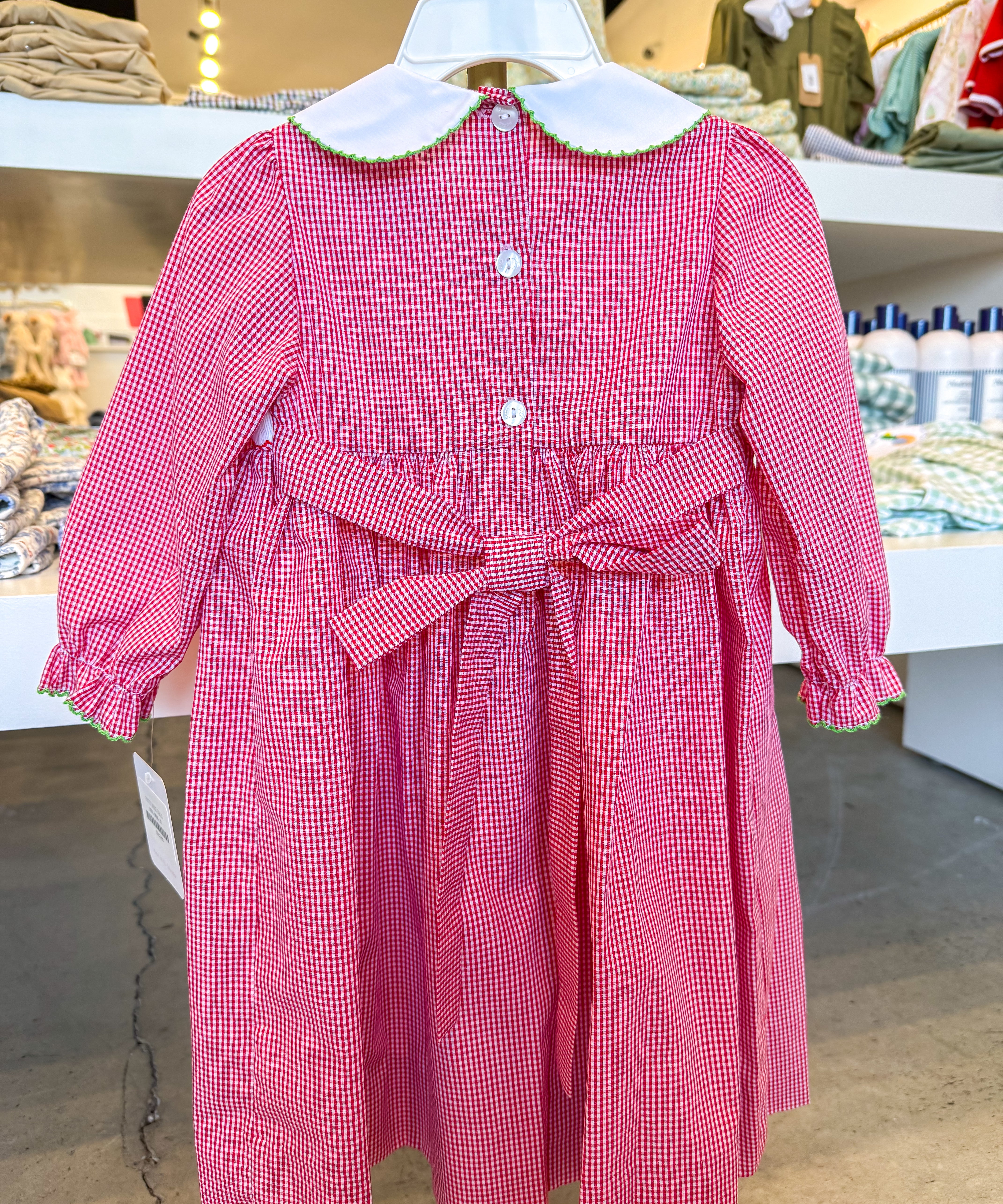 Red Gingham Christmas Trees Dress W/Bows