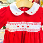 • Hand-Embroidered Smocking: Features elegant red smocking, adding timeless Christmas charm.