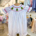 Christmas Trees Hand Smocked Bishop Girls Bubble