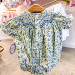 Jessica Blue Floral Smocked Bubble
