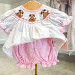 Puppies Girls- Pink Bishop Bloomer Set