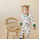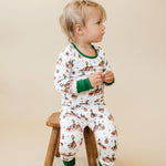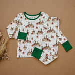 Two Piece Bamboo Pajamas - the perfect blend of comfort and functionality for your little one. Crafted with bamboo viscose & spandex, these pajamas offer a soft and luxurious feel for a cozy nights sleep! Elevate bedtime routines in our 'merry mallards' all over mallard Christmas print pajamas!