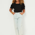 Girls Ribbed Pleated Shoulder Puff Sleeve Top *Ribbed Knit Fabric *Round Cut Neckline *Puff Sleeves