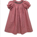 Louisiana at Lafayette Cajuns Smocked Red Cardinal Gingham Short Sleeve Bishop