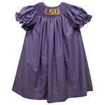 LSU Tigers Smocked Purple Gingham Short Sleeve Bishop