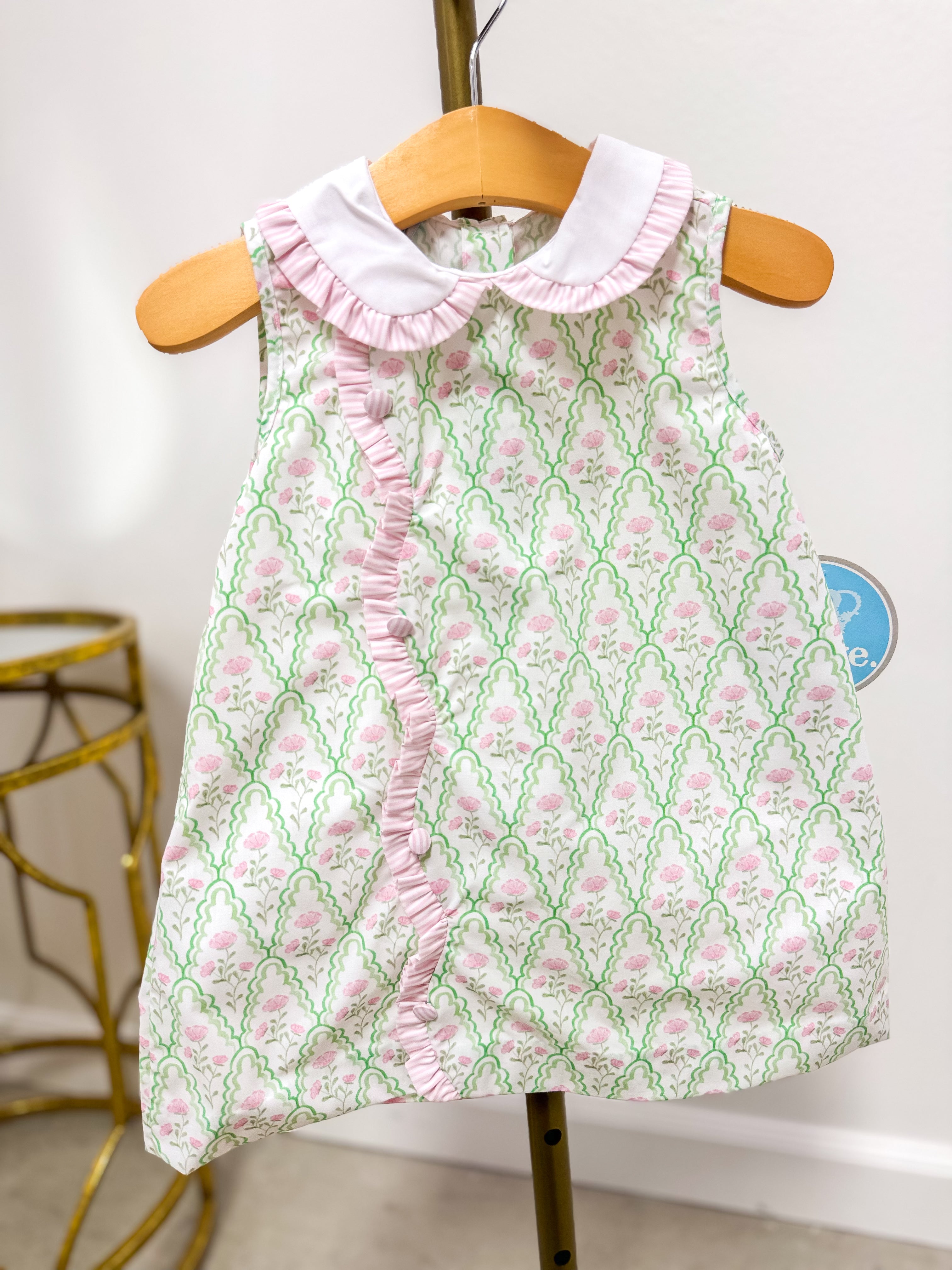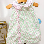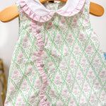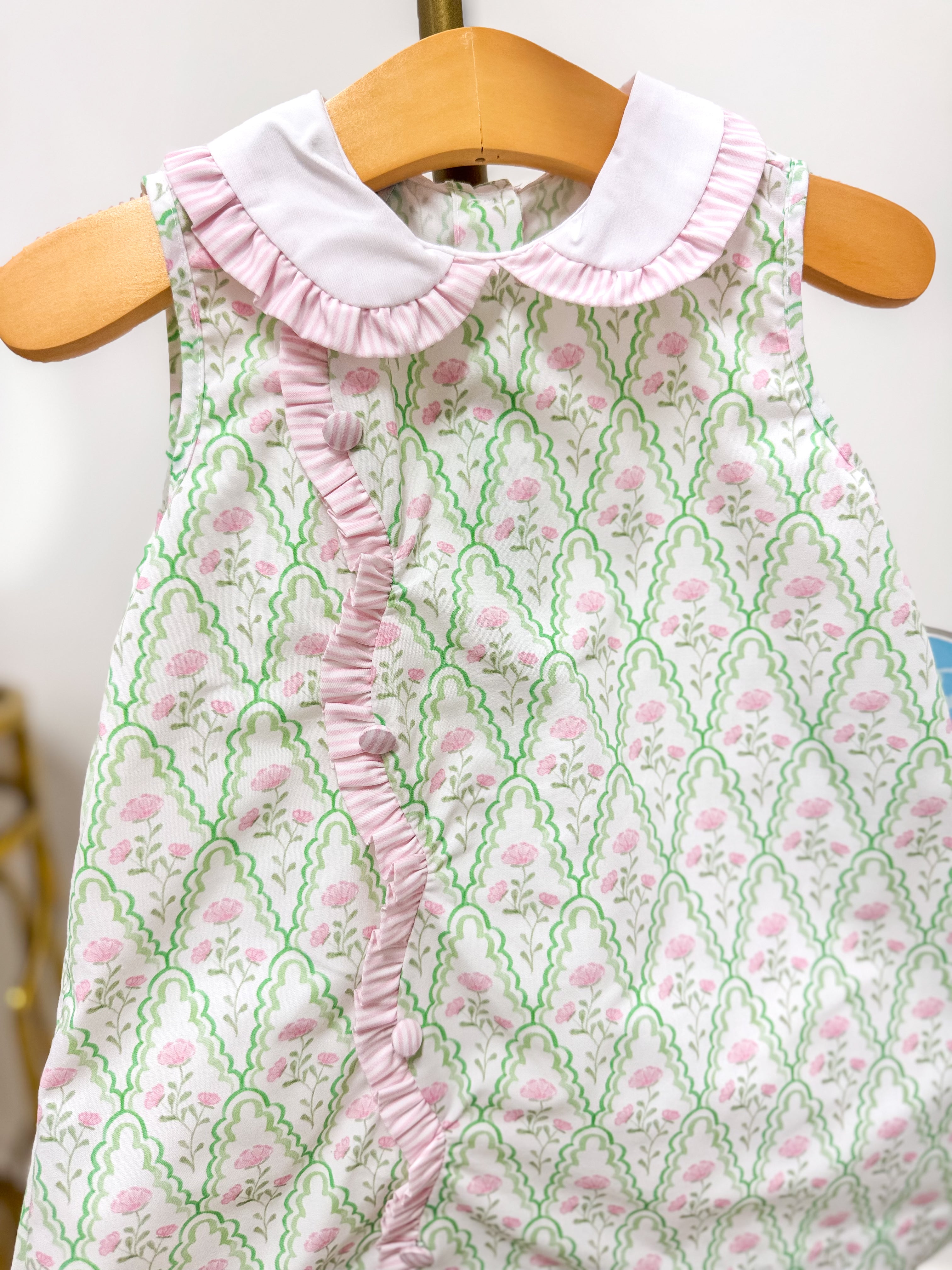 Claire Green & Pink Floral Scallop Dress
