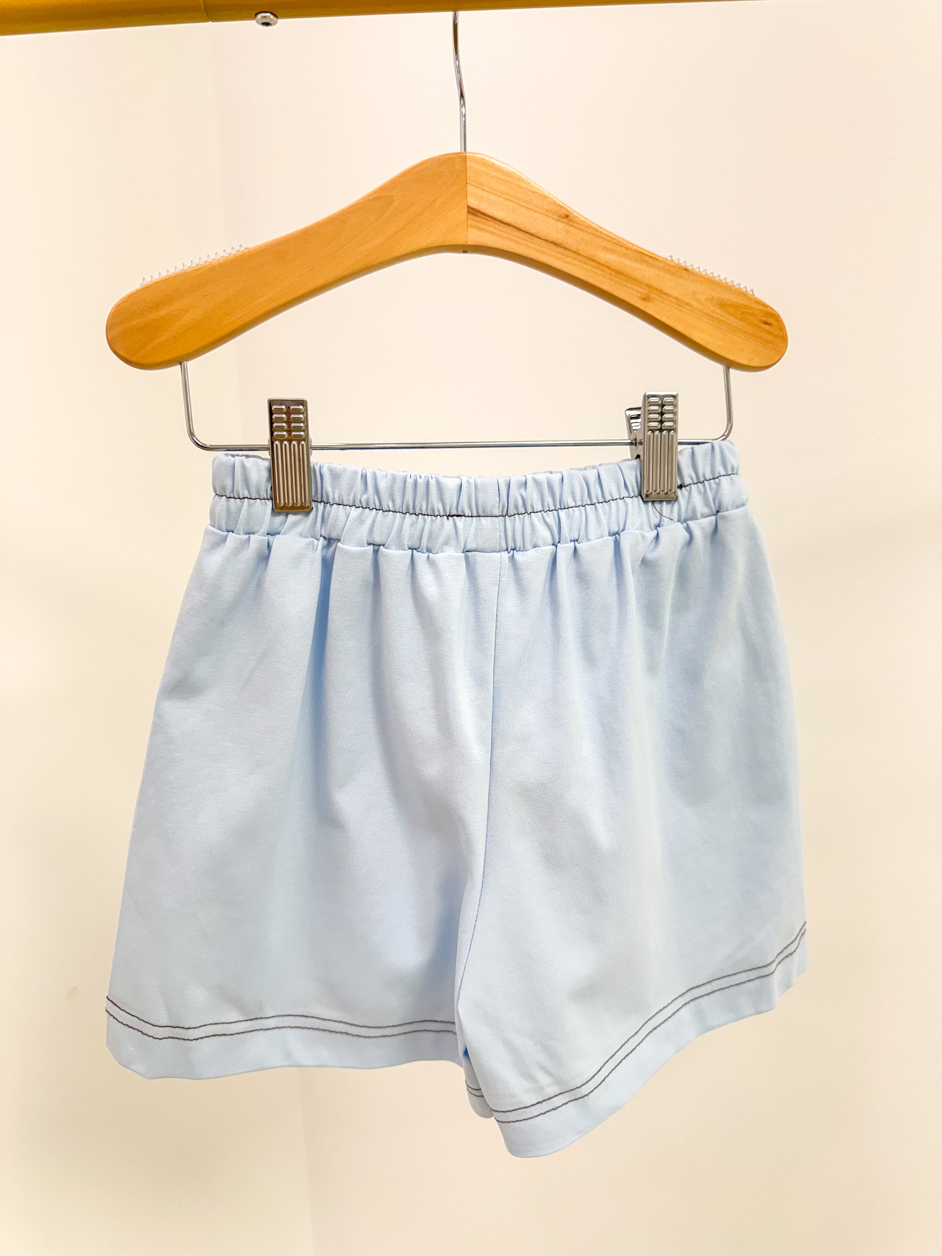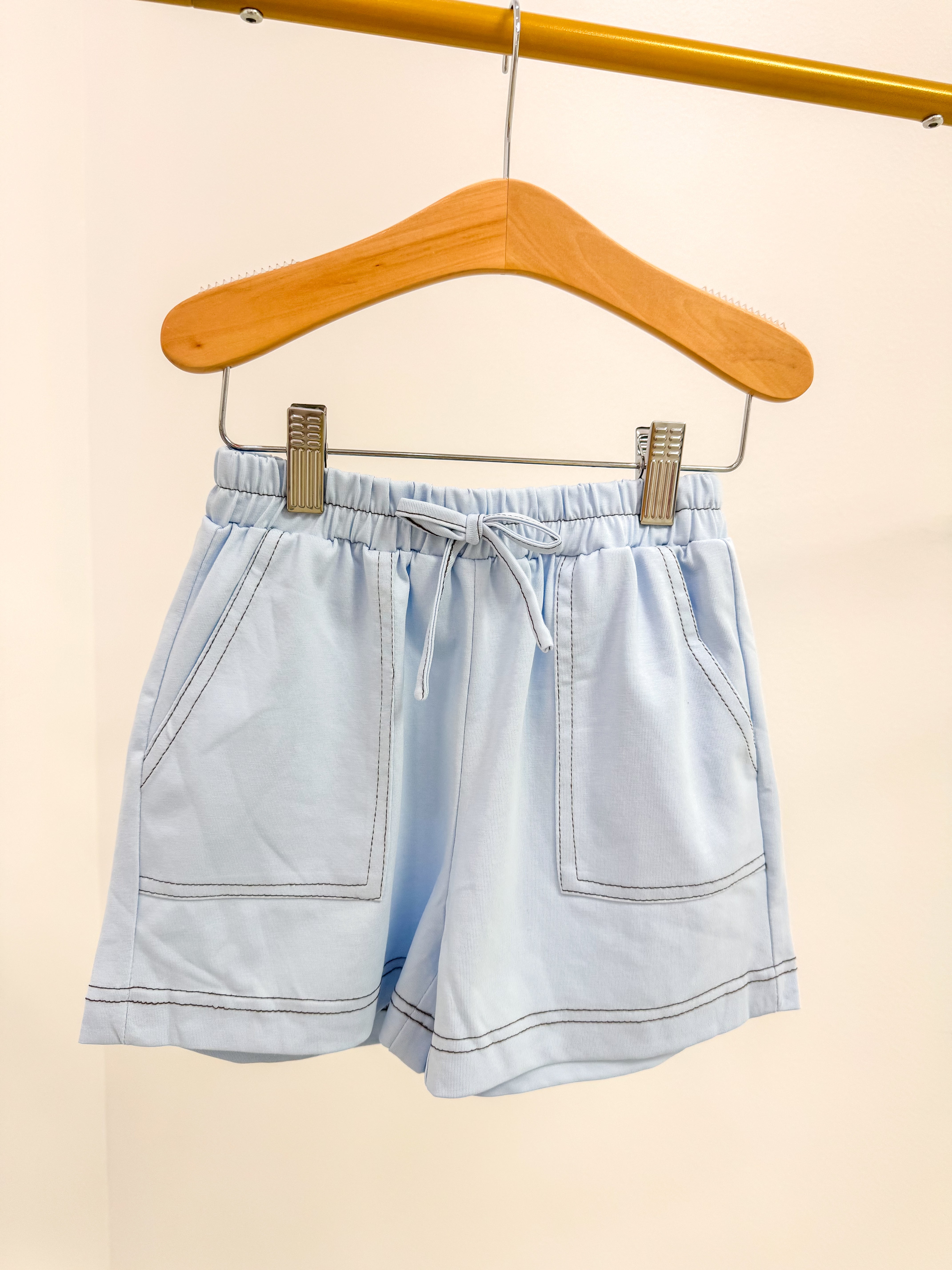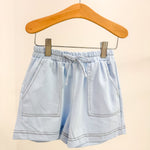 Girl Contrast Light Blue Stitched patch Pocket Shorts