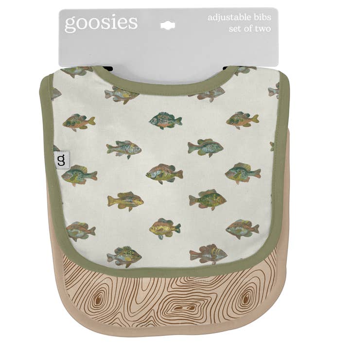 Lake Fish / Wood Grain Set of Two Adjustable Bib