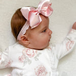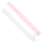 A pair of beautiful and versatile ruffle edge stretch bands for infants and toddlers. One colored band is paired with a white version. Just add any Wee Ones bows, flower or hair clip to show your baby's style! Approximately 5/8" wide band.