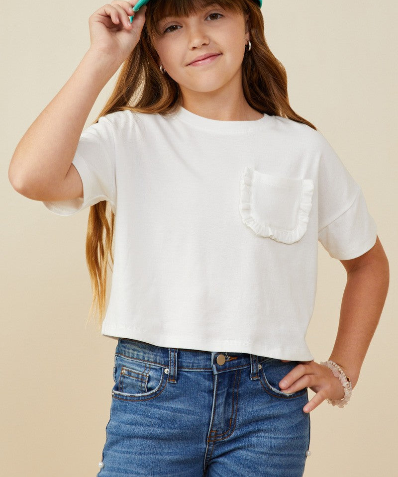 White Ruffle Pocket Tee