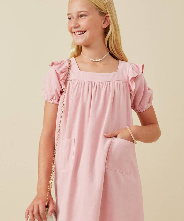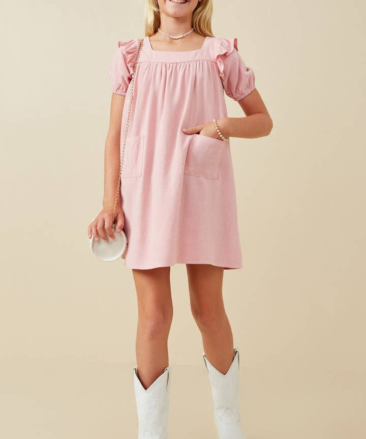Blush Patch Pocket Ruffled Dress