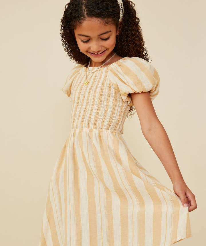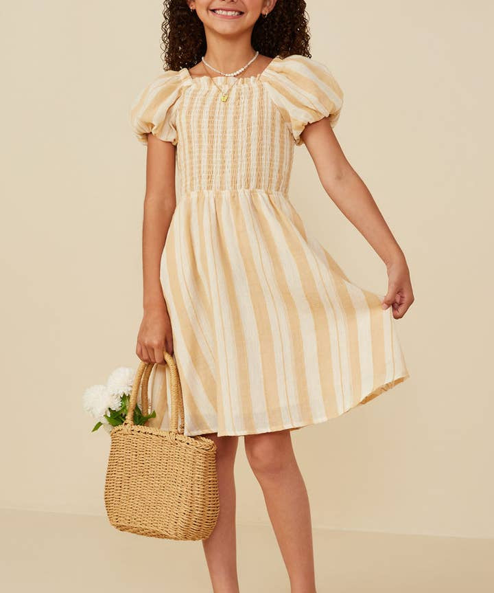 Mya Yellow Striped Smocked Dress