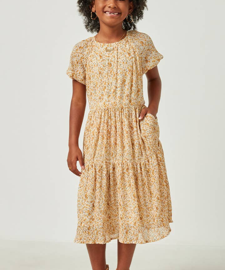 Yellow Ditsy Floral Tiered Dress