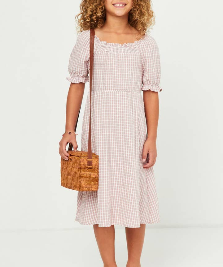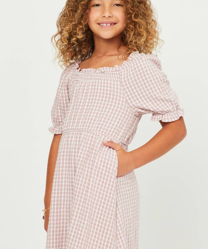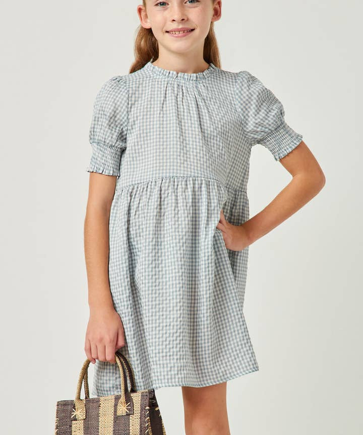 Sophie Girls Seersucker Gingham Smock Cuff Dress