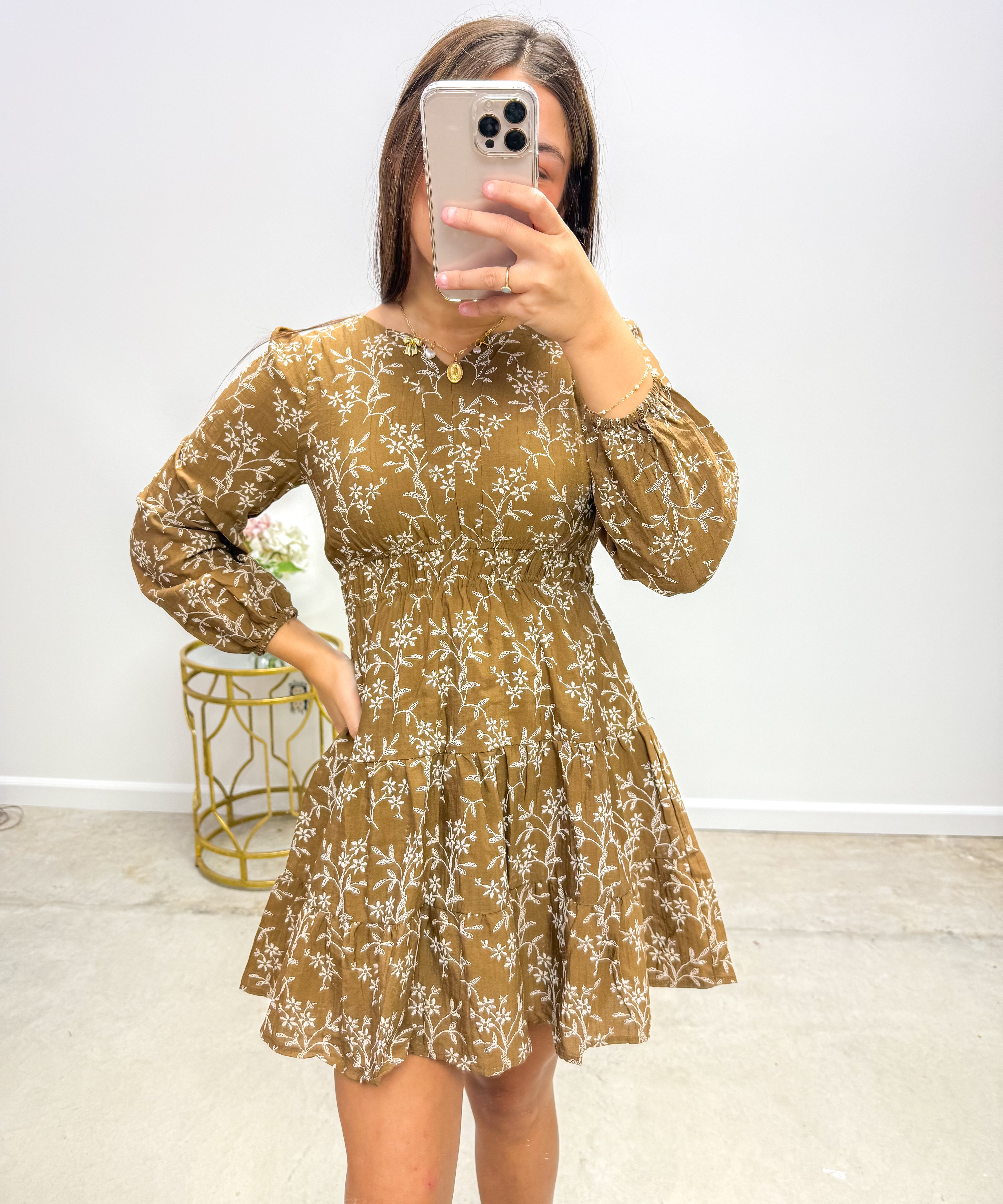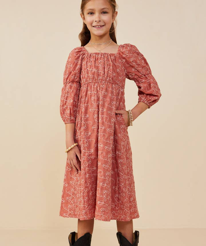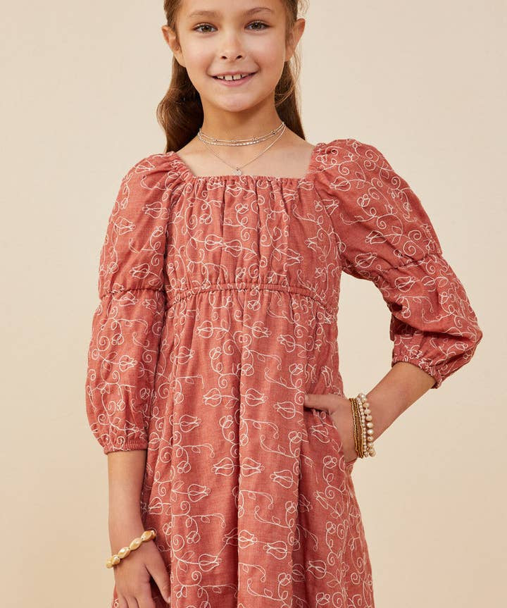 Rust Botanical Embroidered Dress