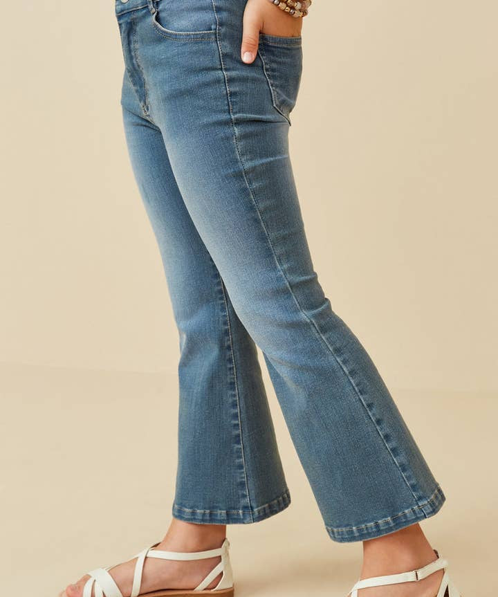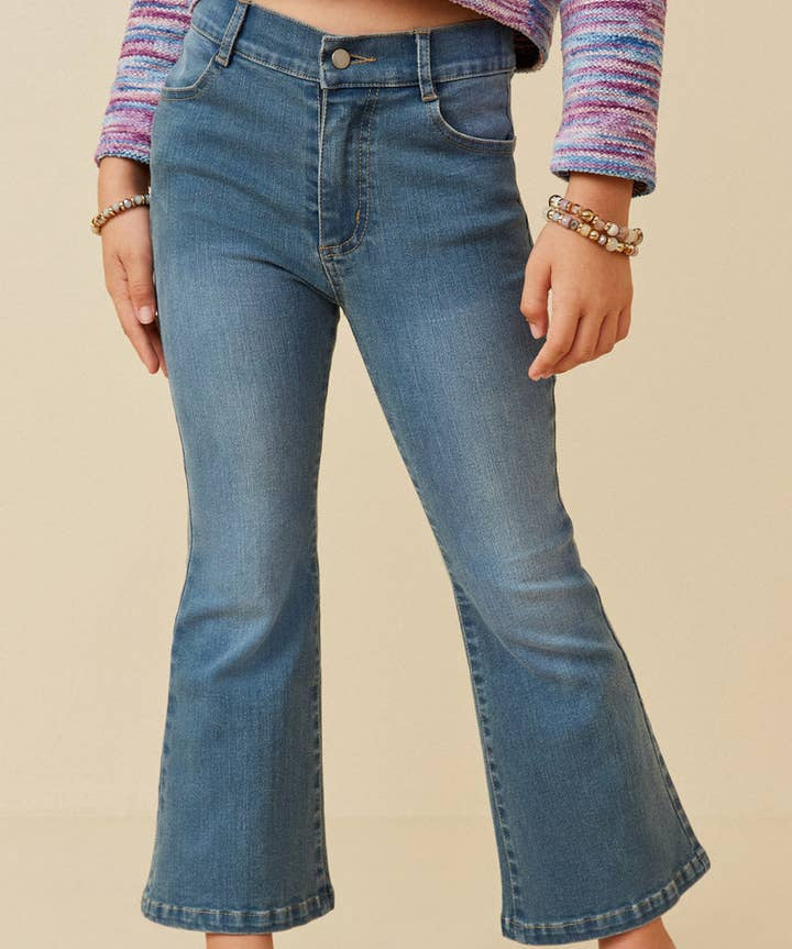 Girls Flared Elastic Waist Stretch Denim Jeans