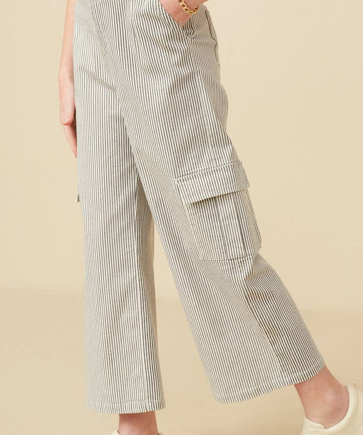 Girls Stretchy Pinstripe Cargo Carpenter Pants