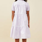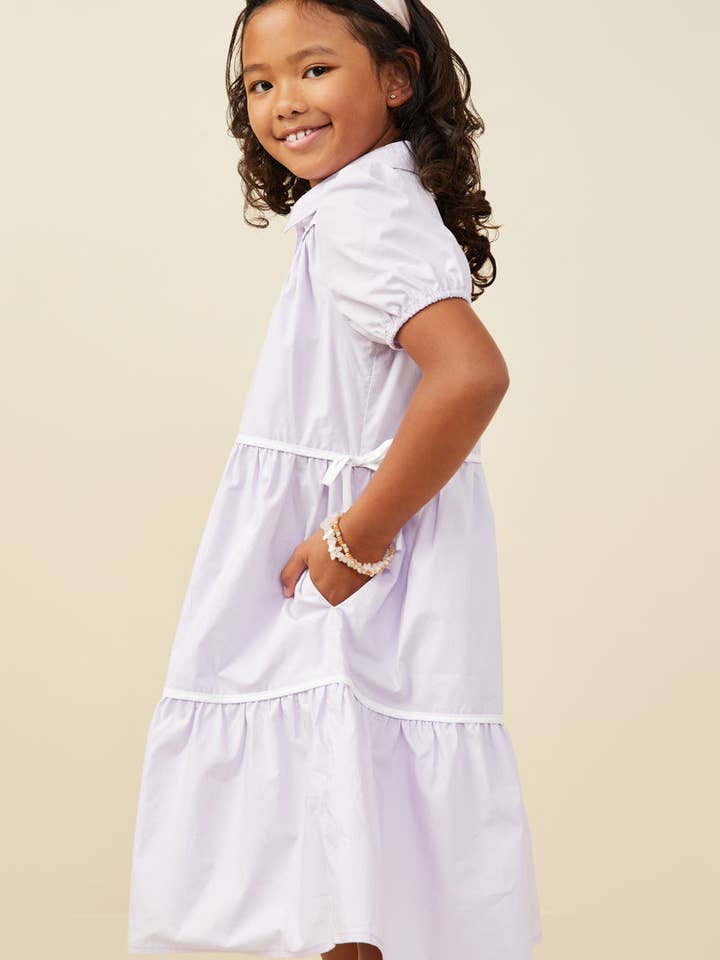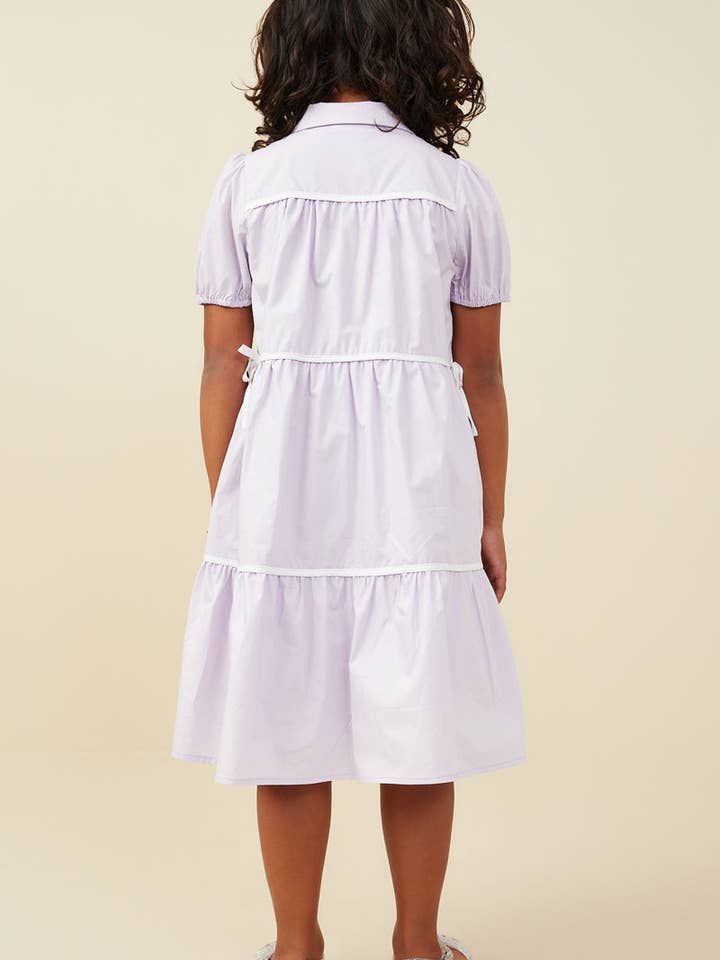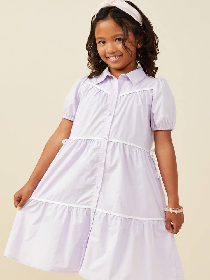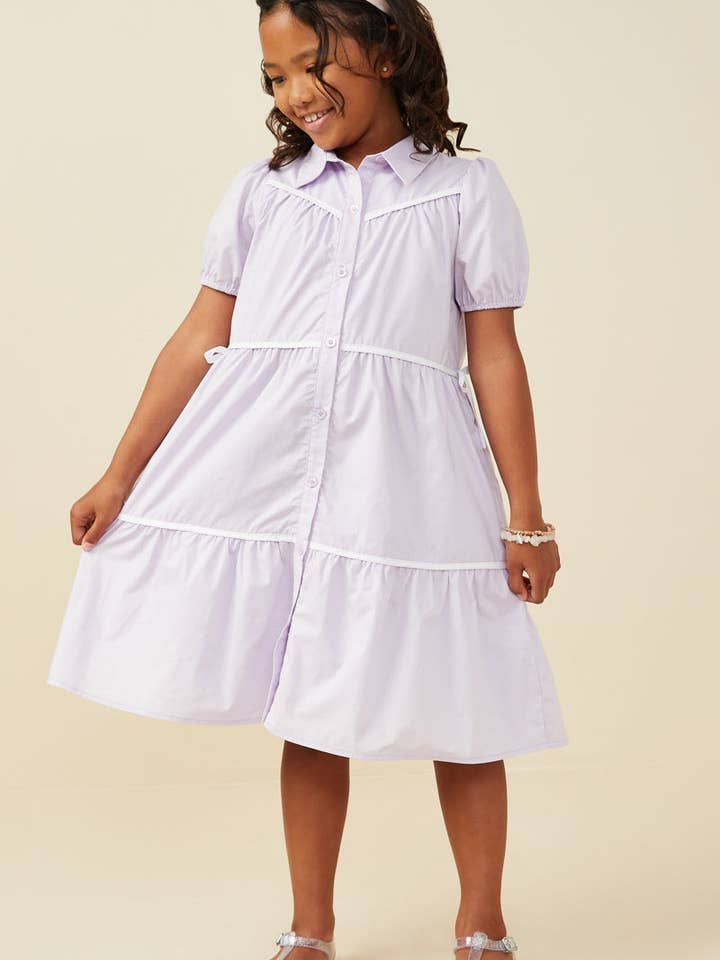 Girls Lavender Contrast Piping Ribbon Button Dress