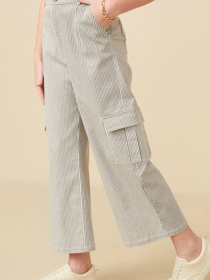 Girls Stretchy Pinstripe Cargo Carpenter Pants