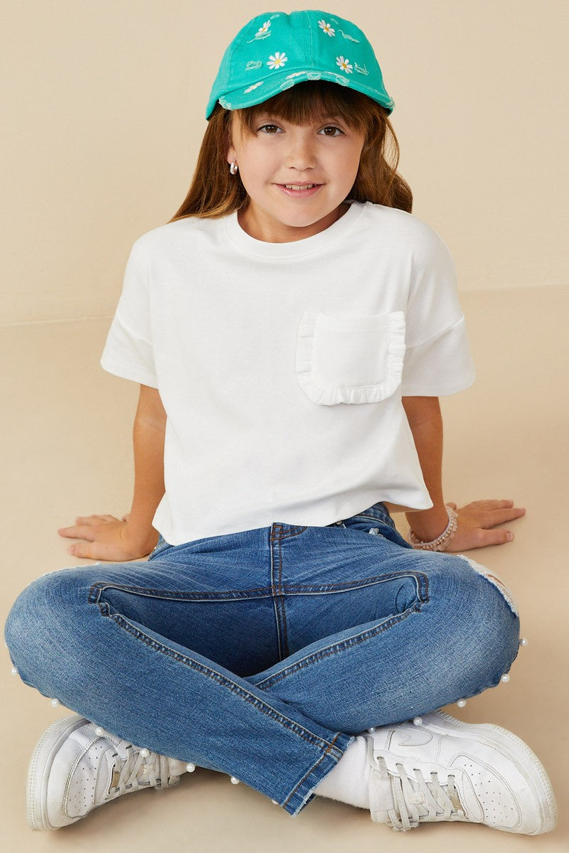 White Ruffle Pocket Tee