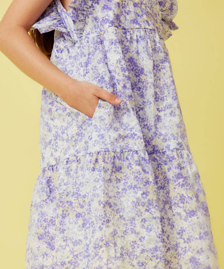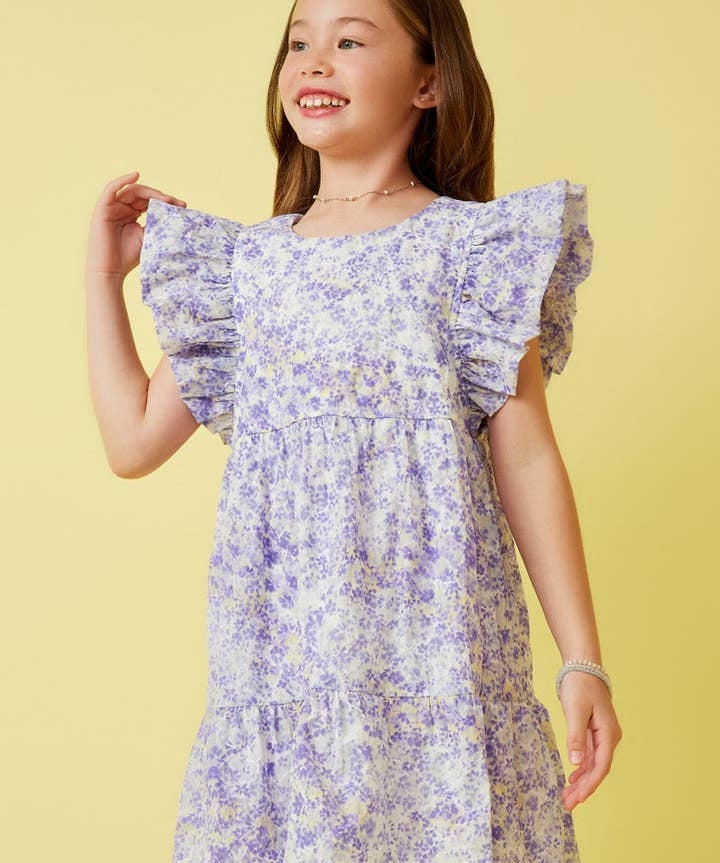 Girls Lavender Ditsy Floral Ruffle Sleeve Dress